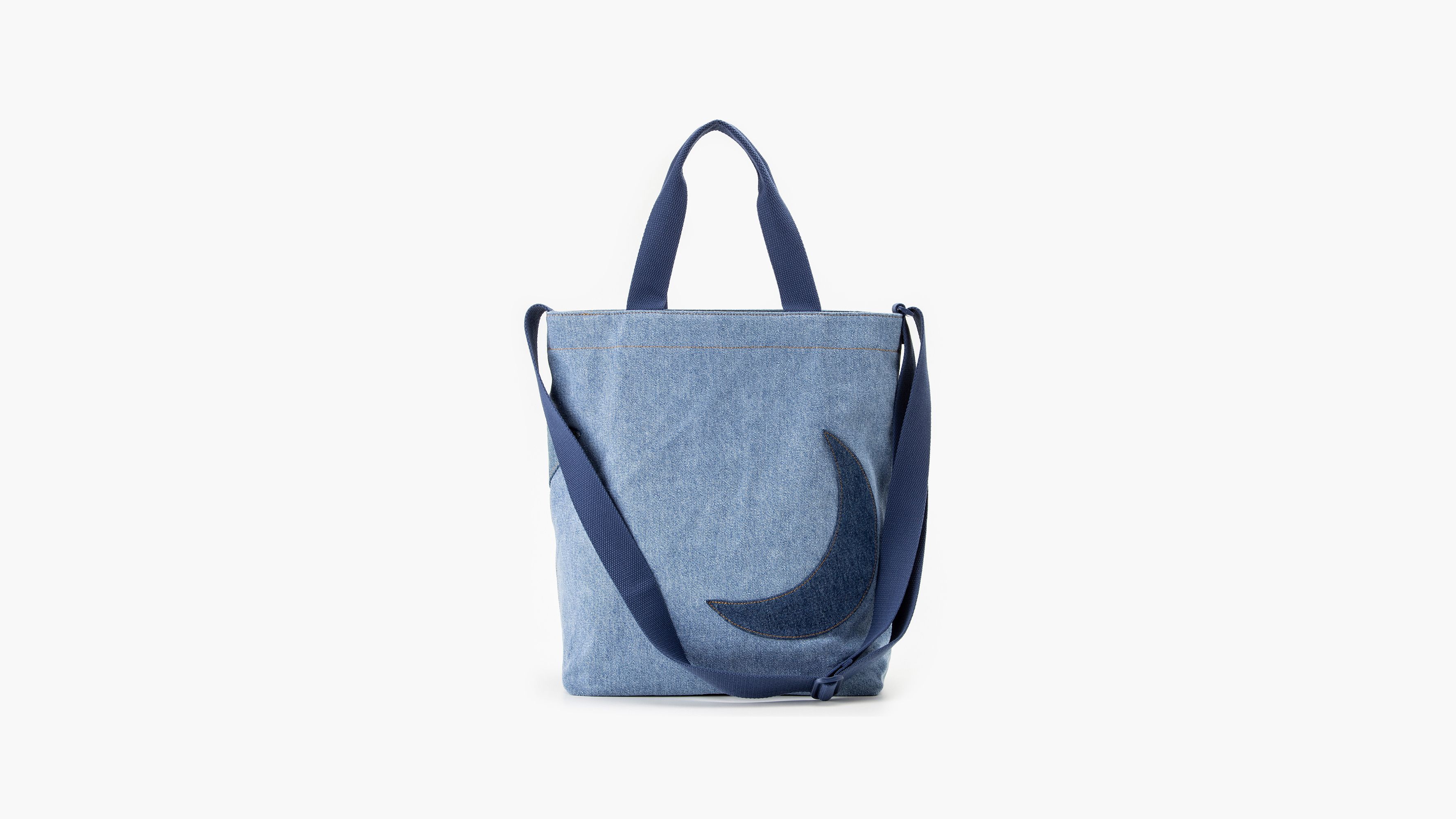 Our Icon Tote gets an update with denim fabric and a patchwork star design.