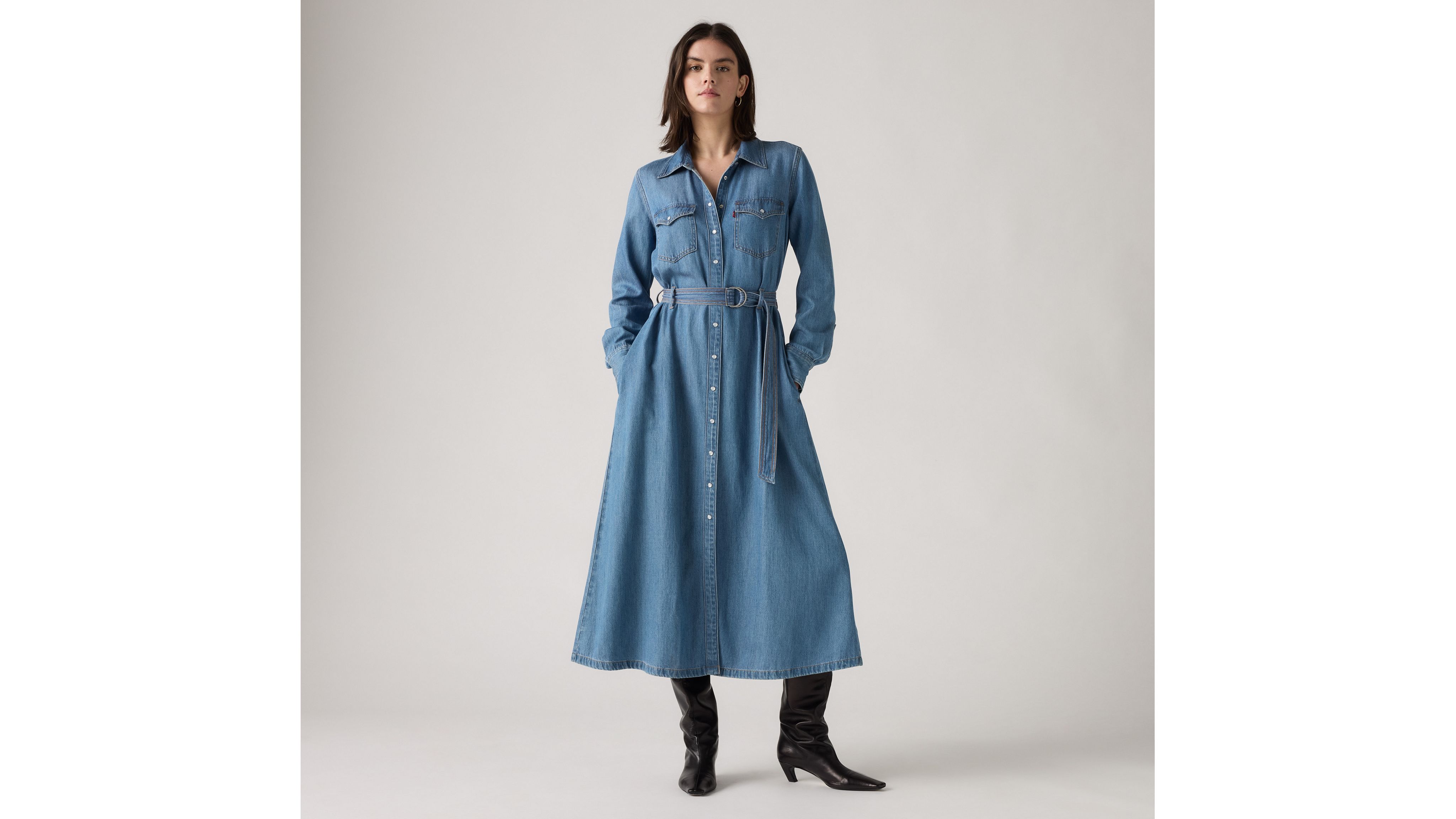 Western, modern, and easy to dress up or down, our Quincey Long-Sleeve Maxi Dress features a button-up front, a belt to define your waist and an ankle-skimming length.