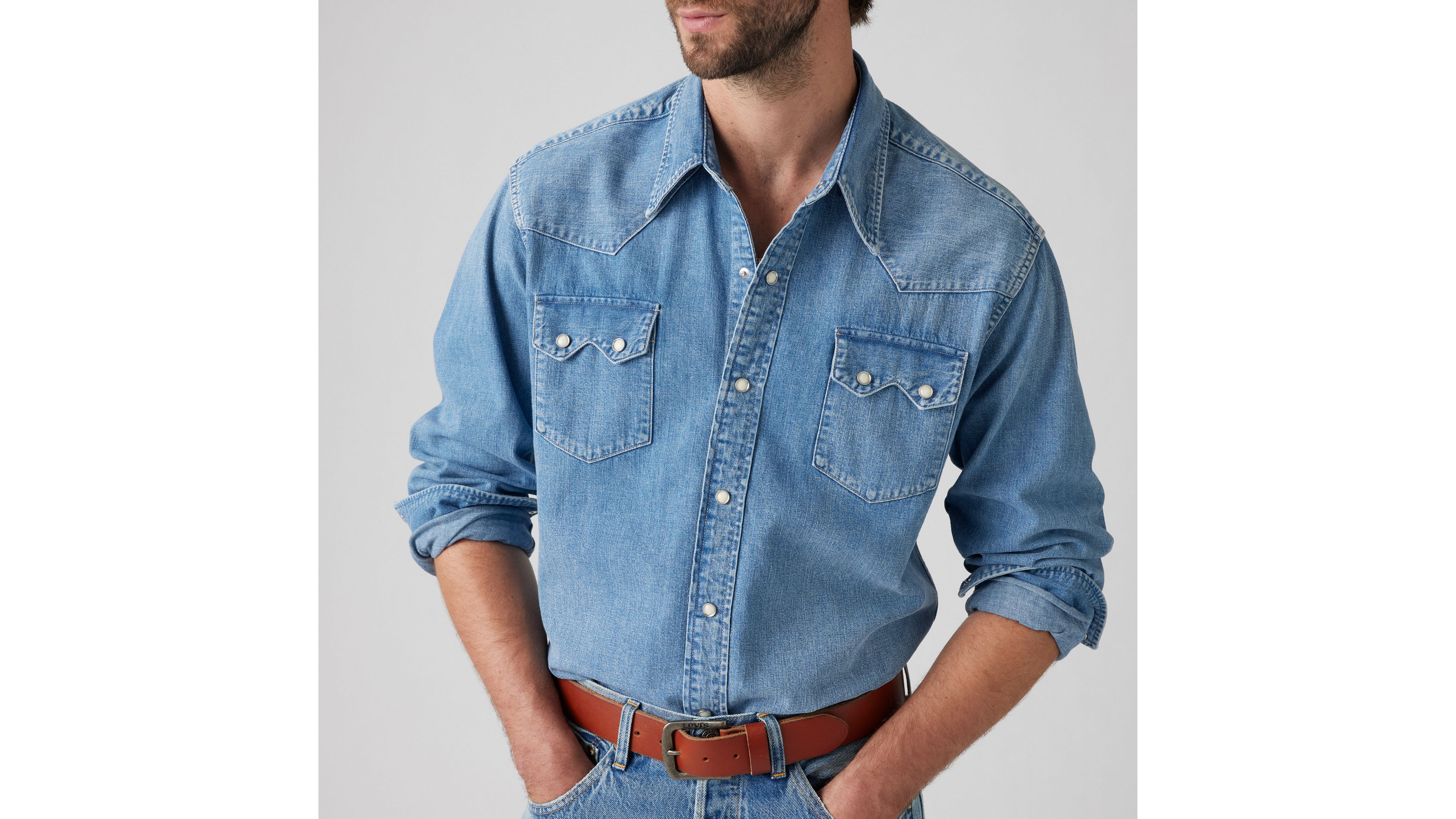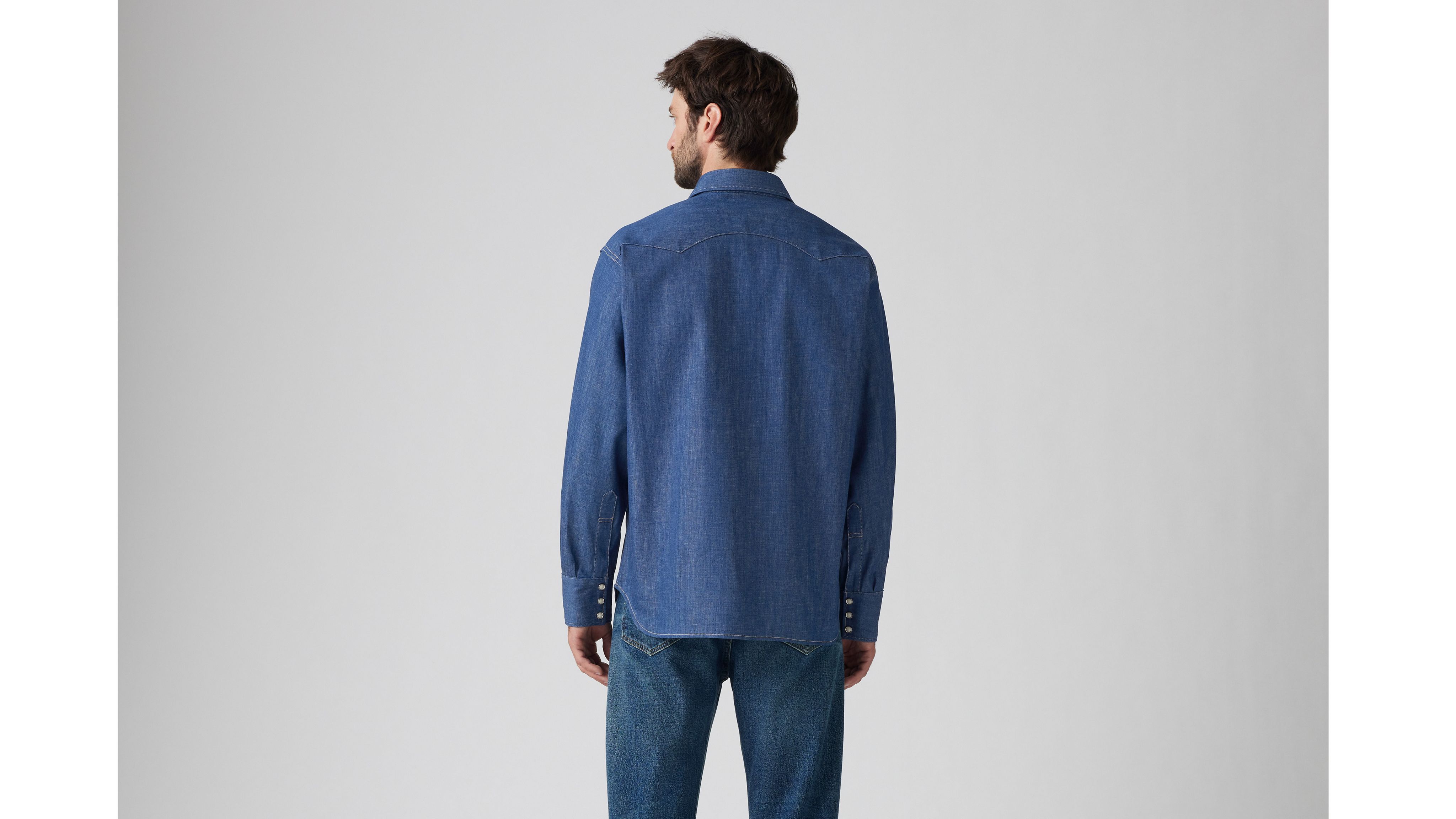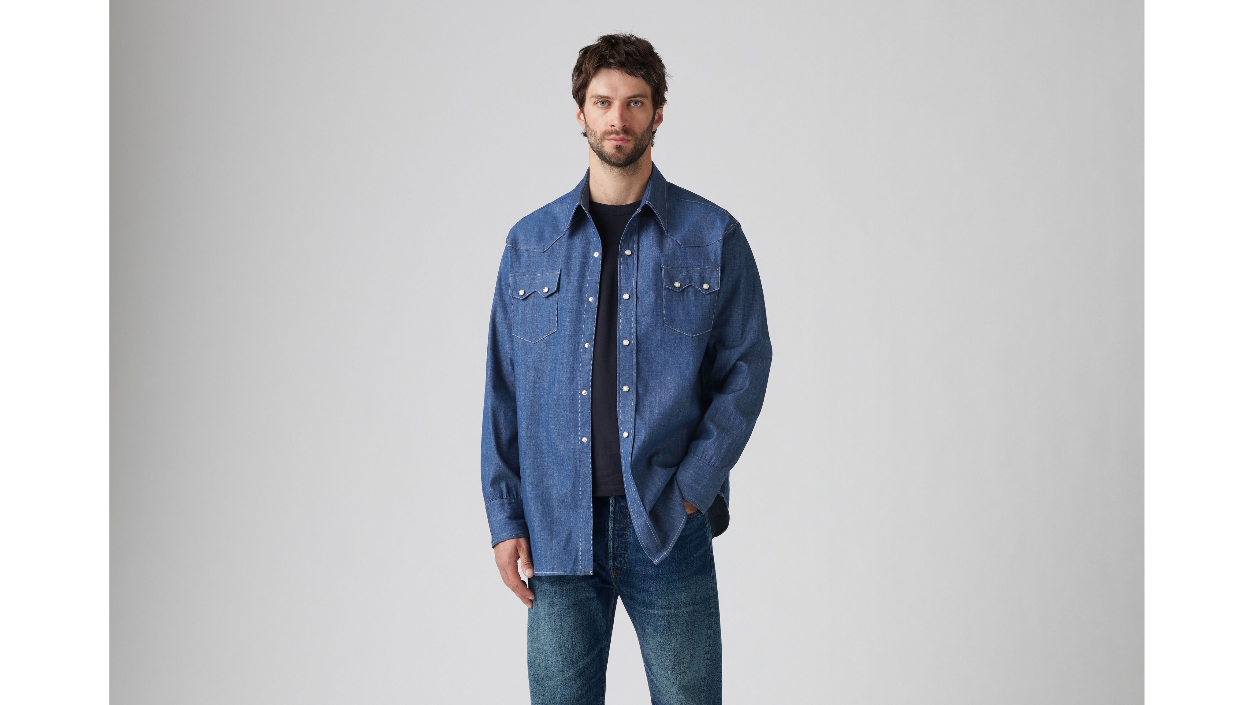 This iconic 1955 Sawtooth Shirt has a regular fit, Mother-of-Pearl snap buttons, western yoke details and the iconic Levi's® shorthorn label. This garment has gone through a unique color dyeing process—color transfer may occur onto other surfaces.