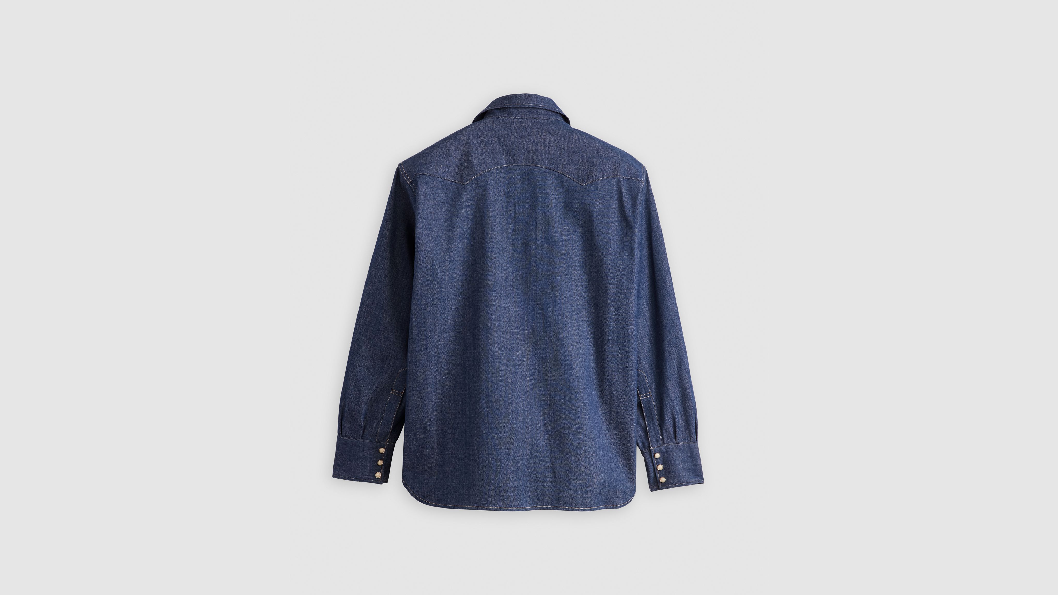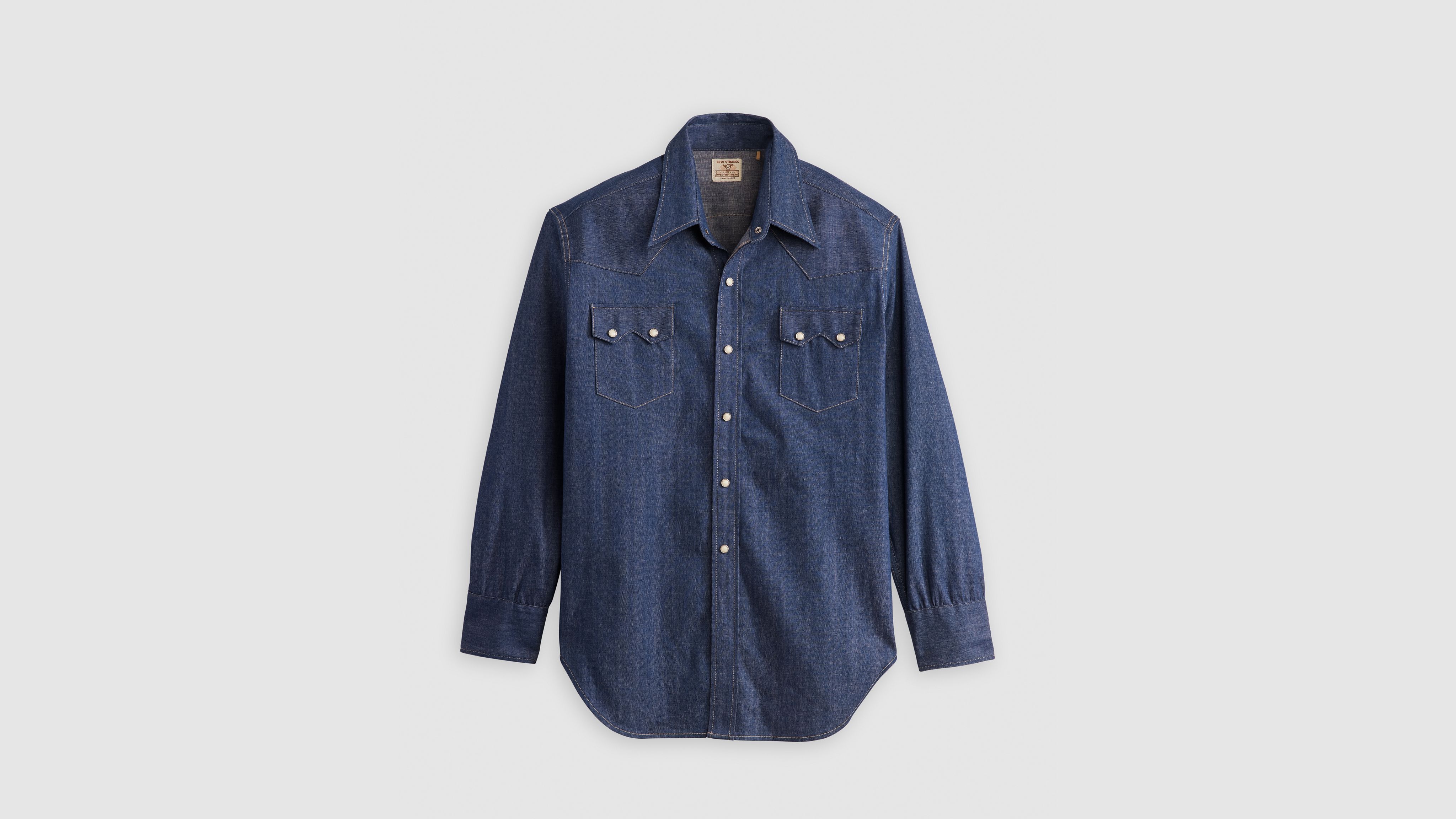 This iconic 1955 Sawtooth Shirt has a regular fit, Mother-of-Pearl snap buttons, western yoke details and the iconic Levi's® shorthorn label. This garment has gone through a unique color dyeing process—color transfer may occur onto other surfaces.