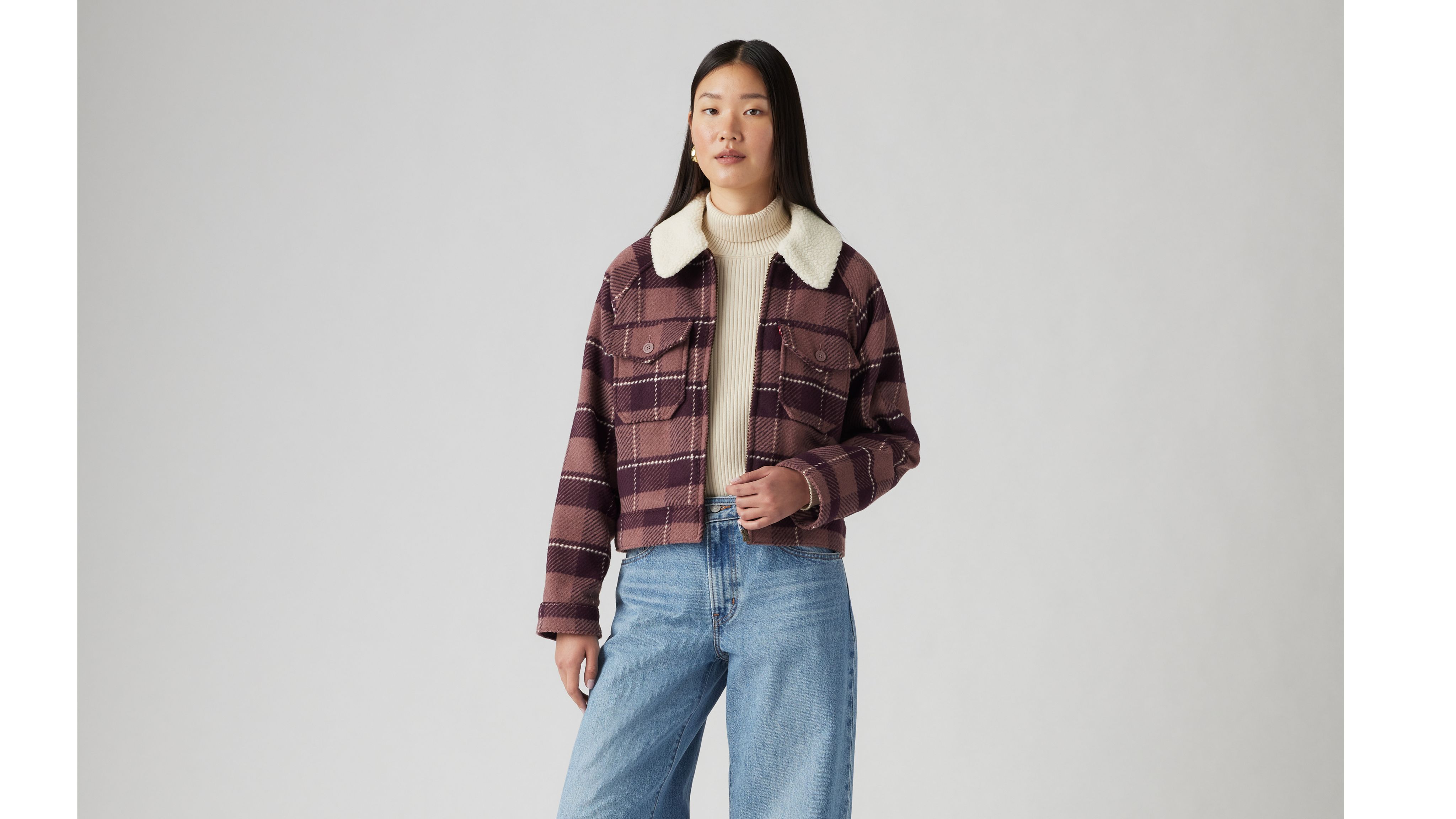 Equal parts vintage and cozy, our Shrunken '90s Flannel Jacket is an easy layer with a little edge. We gave it a zip-up front, two chest pockets, a cropped cut and a sherpa collar.