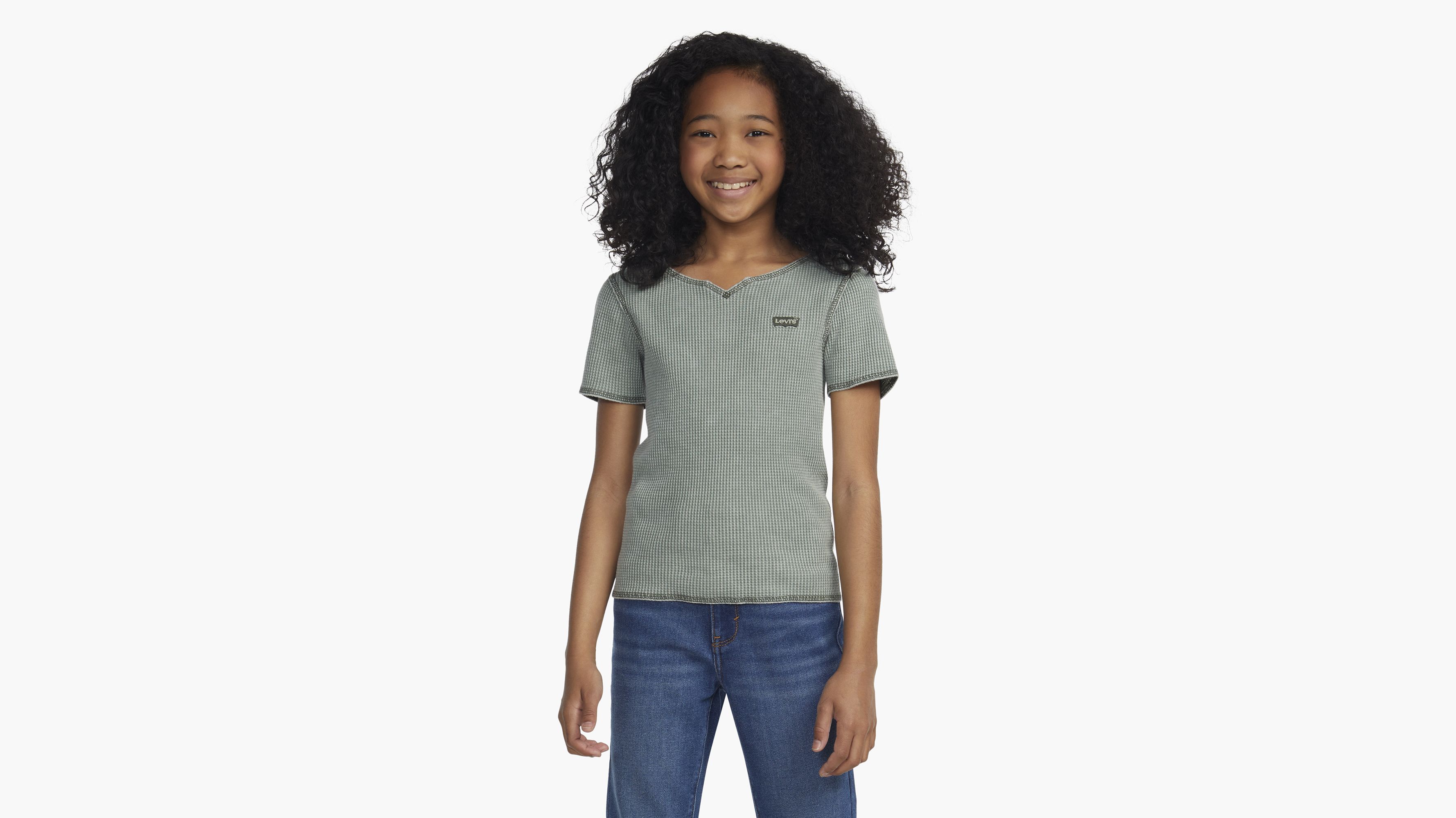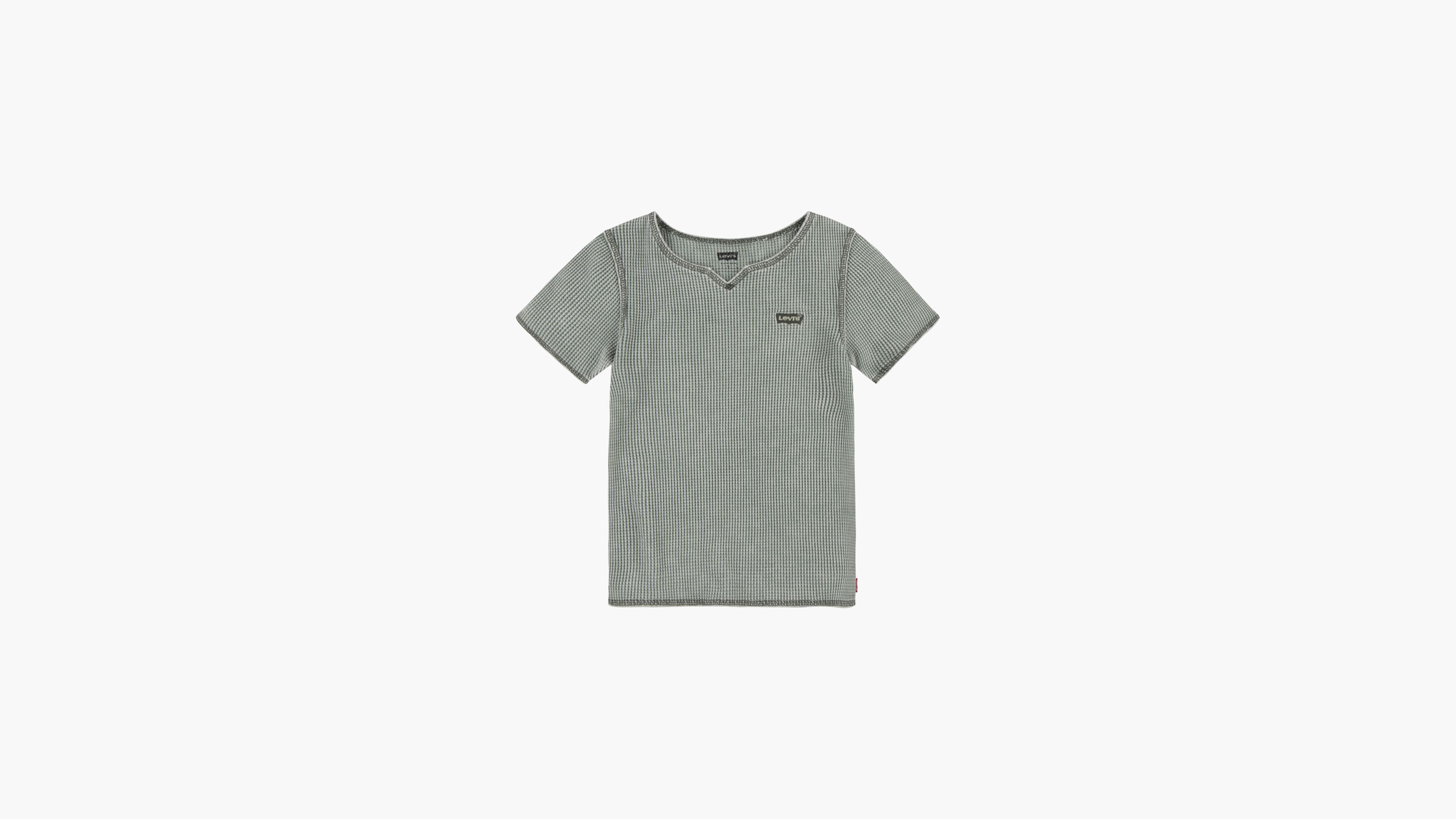This lovely, vintage-inspired Levi's® tee will fit perfectly with our denim. It features short sleeves and a notched v-neck. Chunky waffle-textured fabric provides a trendy close fit.