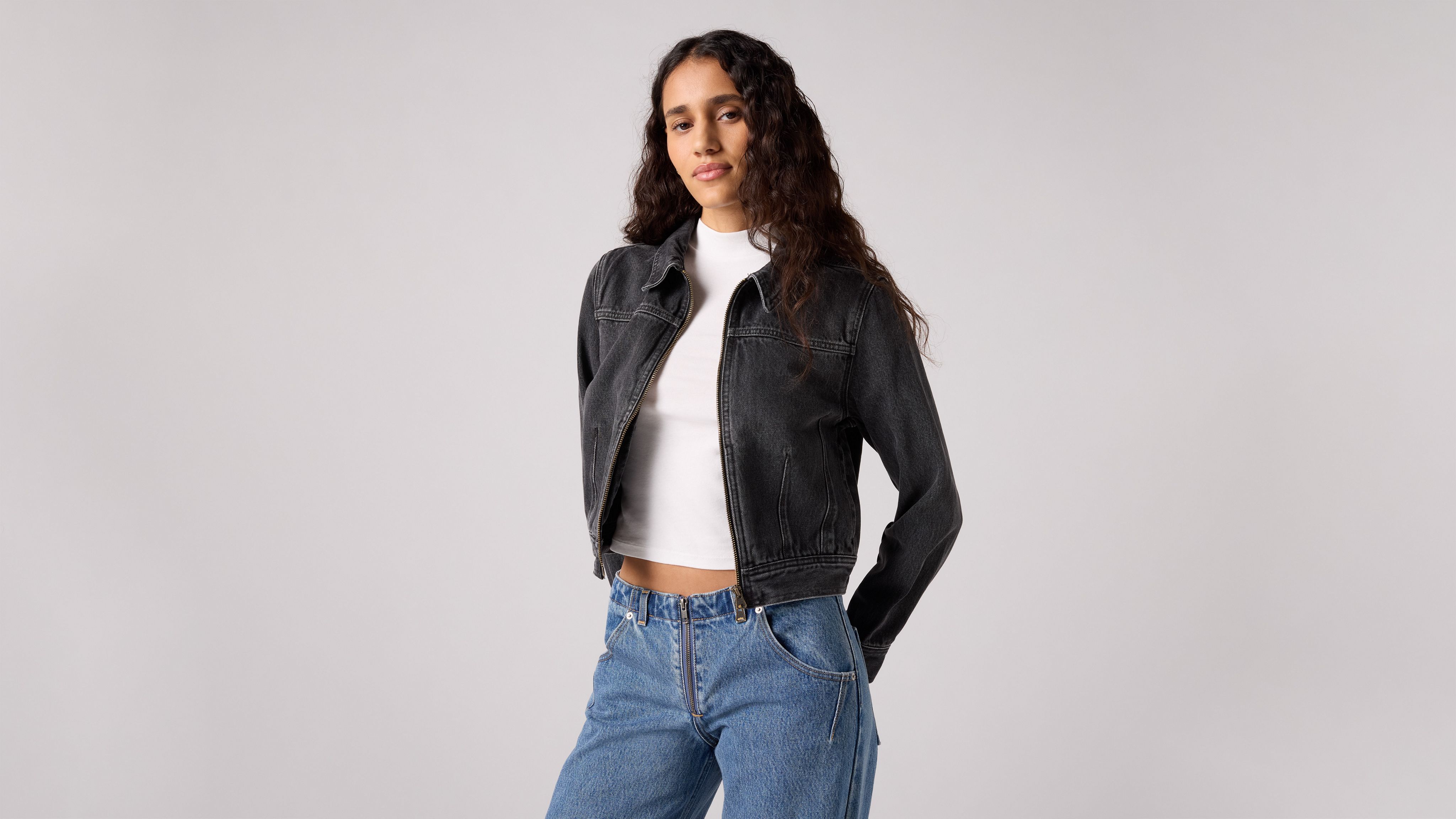 We took our classic Trucker Jacket and shrunk it to create our XS Dart Trucker Jacket. Cut with a flattering cropped, slim fit, it features a zip-up front and dart detailing for a vintage-inspired look.