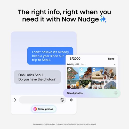 Now Nudge with Galaxy AI³ is your behind-the-scenes assistant that just gets you. When you need to reply¹ to a text, search for info or fill out an online form, Now Nudge uses your screen cues to pull up information⁵ saved on your phone, right when you need it. That means quicker replies, fewer frantic app switches and more moments that feel like you’re running your day —and not the other way around.