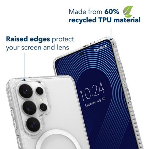 Durable polycarbonate (PC) and 60% recycled thermoplastic polyurethane (TPU) provides drop protection up to 8 ft.