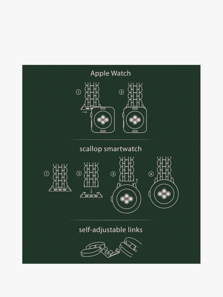 The Kate Spade Scallop Link Stainless Steel Bracelet 38/40Mm Band For Apple Watch® has only been released in a limited number of countries. If you would like to purchase the Kate Spade Scallop Link Stainless Steel Bracelet 38/40Mm Band For Apple Watch® before it''s available in your country, you can do so via the Big Apple Buddy site. Simply place your order and your Kate Spade Scallop Link Stainless Steel Bracelet 38/40Mm Band For Apple Watch® will be delivered to your international address in as little as a few days. Big Apple Buddy currently ships to over 100 countries worldwide.