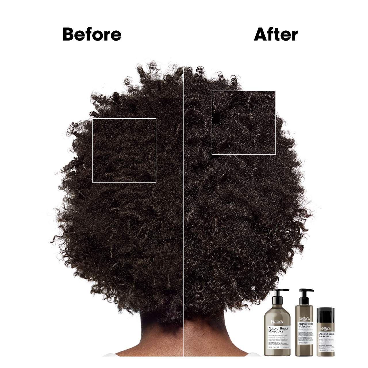 -Follow up with Absolut Repair Molecular Rinse-Off Serum and Leave-In depending on hair type and damage levels (sold separately).