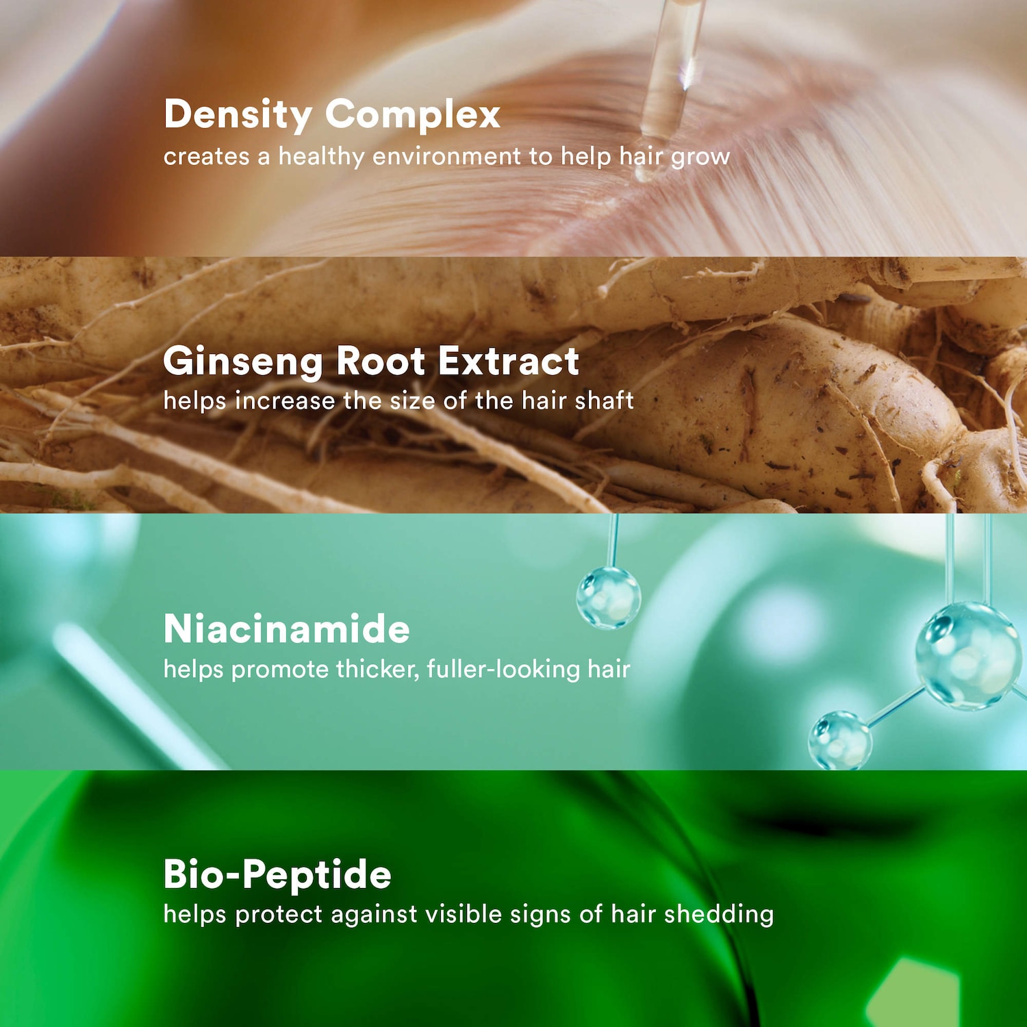 What it is: A lightweight hair serum, with ginseng root extract and niacinamide, that visibly increases hair density and minimizes the appearance of thinning hair.