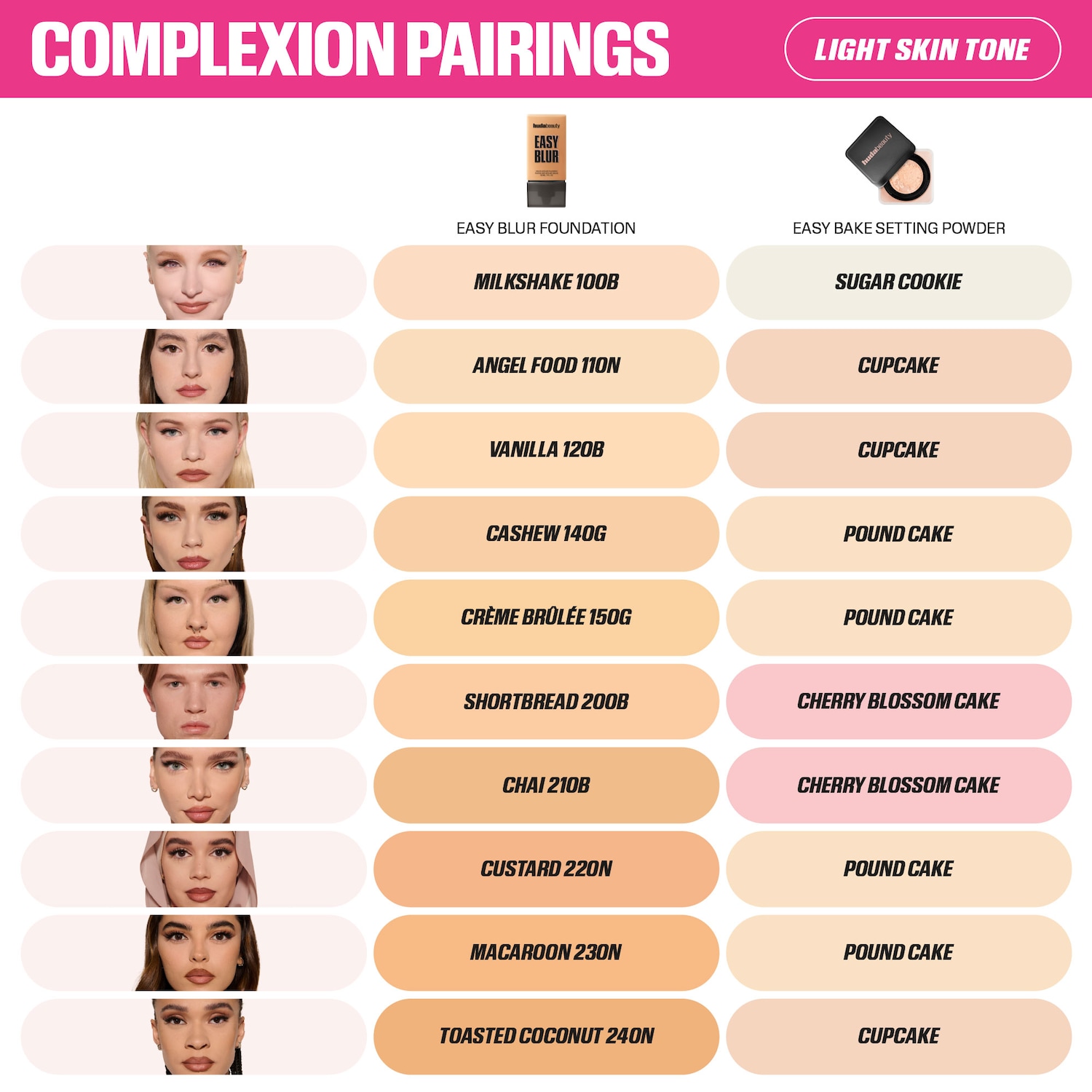 Huda's Hack: Use a lighter shade of Easy Bake Loose Baking & Setting Powder to help brighten under eyes and high points of the face. ‘Sugar Cookie’ is our translucent powder for those looking for a universal shade.