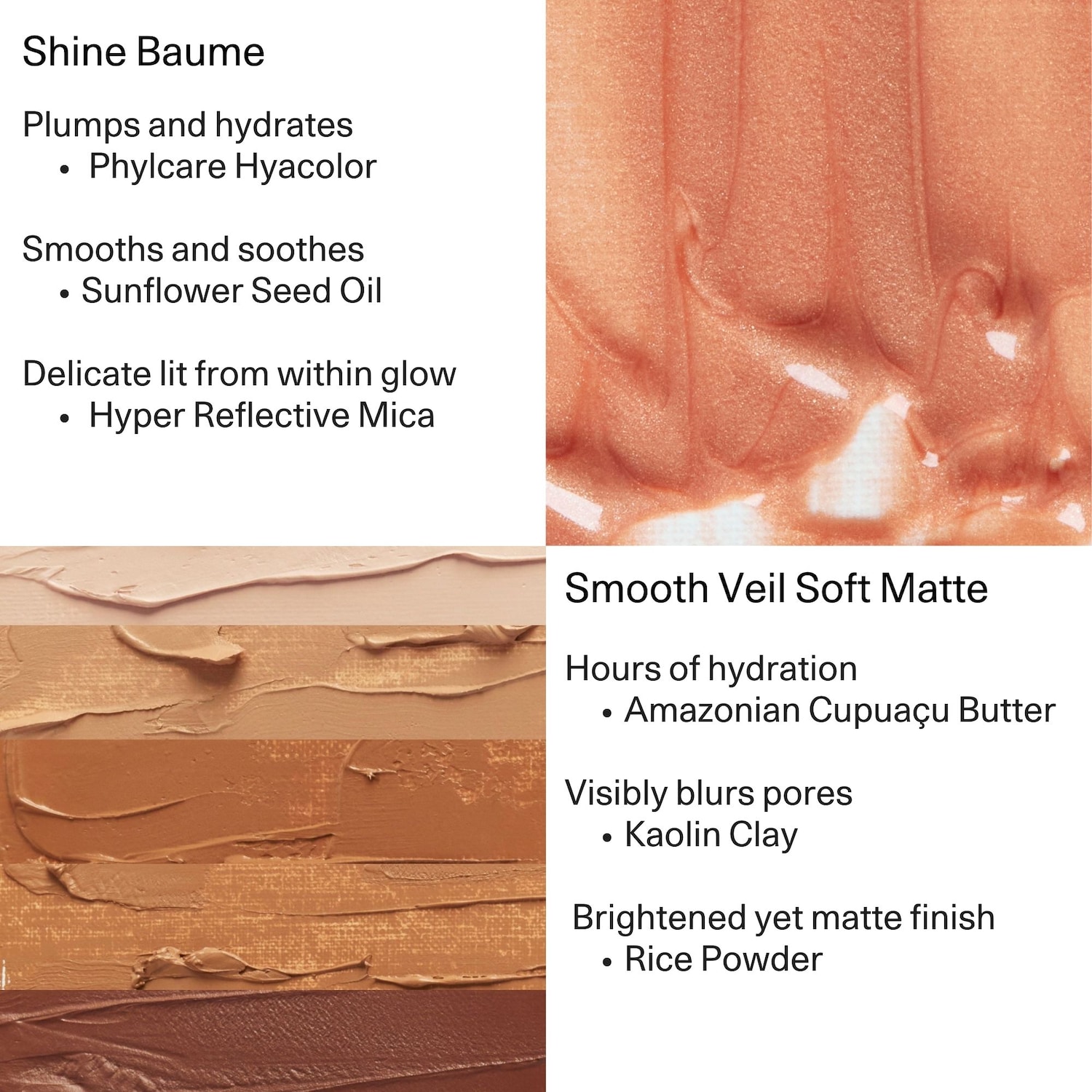 What Else You Need to Know: The creamy Smooth Veil Soft Matte formula creates a soft-focus finish with medium-buildable coverage, while the Shine Baume gives you a luminous glow. Formulated to be used together for a unique three-dimensional effect.