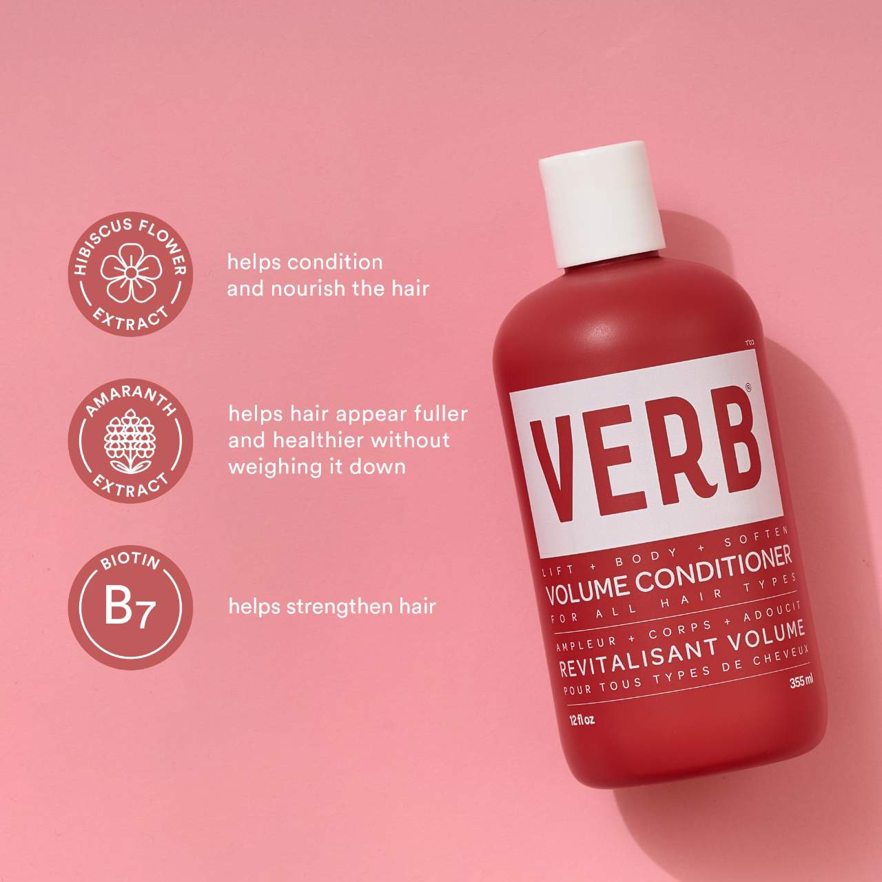 What Else You Need to Know: Verb Volume Enhancing Conditioner softens, detangles, and lifts flat hair. Powered by hibiscus extract, amaranth extract, and biotin, this lightweight conditioner is formulated to add body for hair that is bouncy, smooth and voluminous.