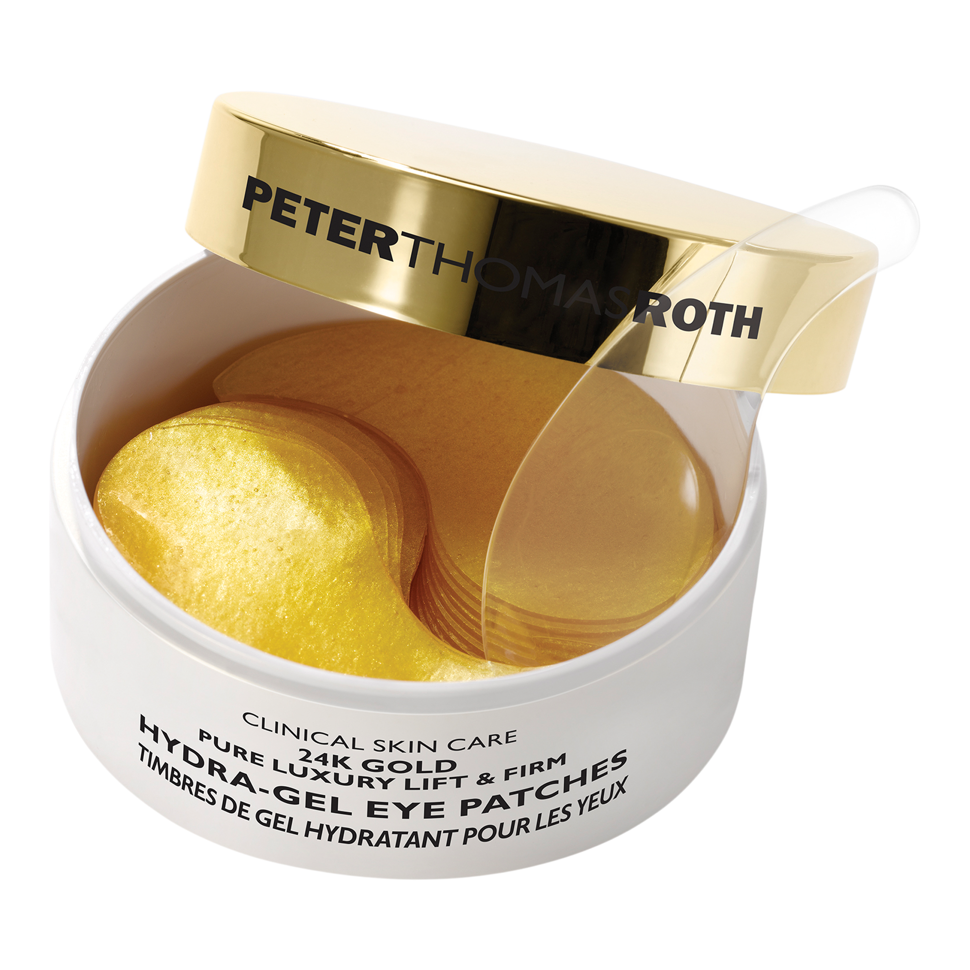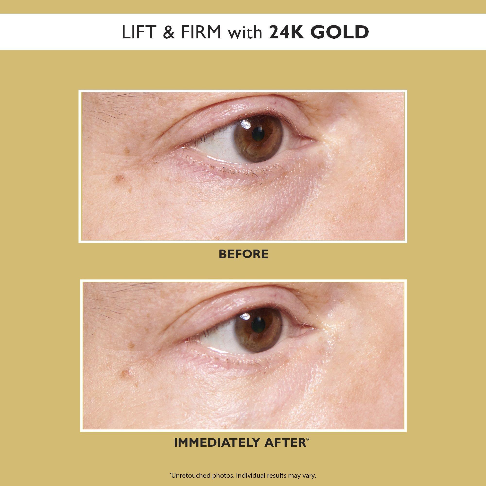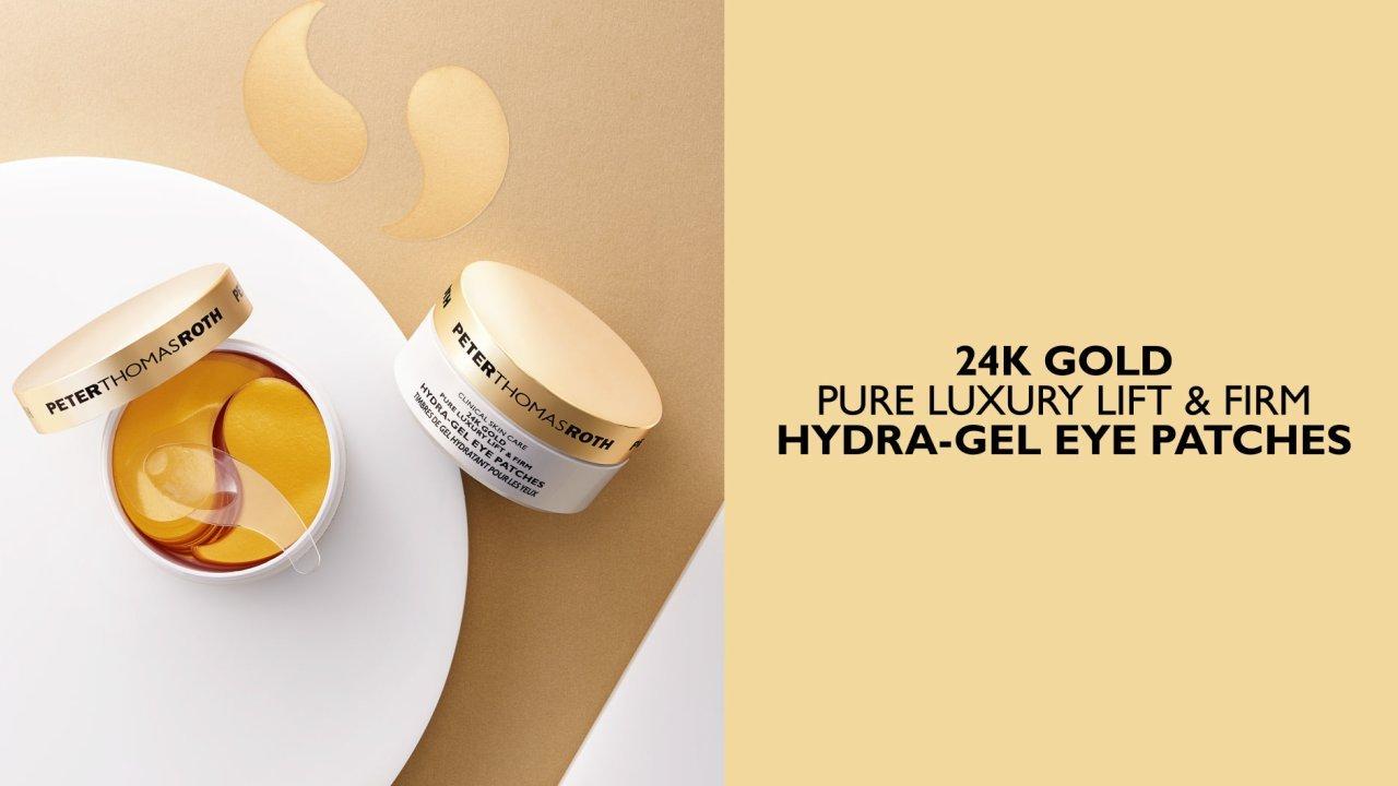 Peter Thomas Roth 24K Gold Pure Luxury Lift & Firm Hydra-Gel Eye Patches are infused with 24K Gold and Colloidal Gold to help lift and firm the look of the delicate eye area.
