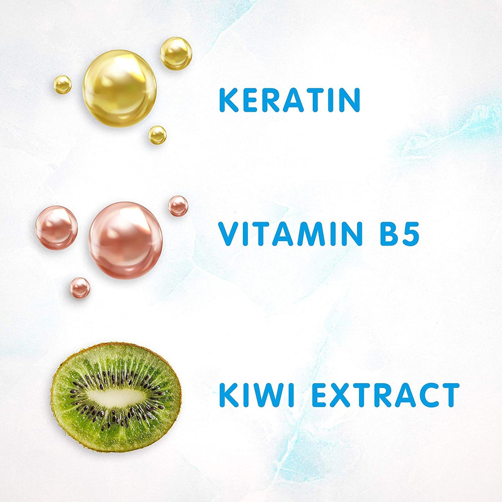 Water (Aqua), Sodium C14-16 Olefin Sulfonate, Cocamidopropyl Betaine, Glycerin, Cocamide MIPA, Sodium Methyl Cocoyl Taurate, Glycol Distearate, Hydroxyethyl Urea, Keratin, Hydrolyzed Keratin, Panthenol, Aloe Barbadensis Leaf Juice, Simmondsia Chinensis (Jojoba) Seed Oil, Hydrolyzed Jojoba Esters, Actinidia Chinensis (Kiwi) Fruit Extract, Arnica Montana Flower Extract, Cetrimonium Chloride, Humulus Lupulus (Hops) Extract, Cocoglucosides Hydroxypropyltrimonium Chloride, Guar Hydroxypropyltrimonium Chloride, Lactic Acid, Phytic Acid, Sodium Phytate, Sodium Lauroyl Methyl Isethionate, Sodium Lauroyl Glycinate, Triethyl Citrate, PEG-2 Cocamide, Polyquaternium-7, Trisodium Ethylenediamine Disuccinate, Benzyl Alcohol, Phenoxyethanol, Fragrance (Parfum).
