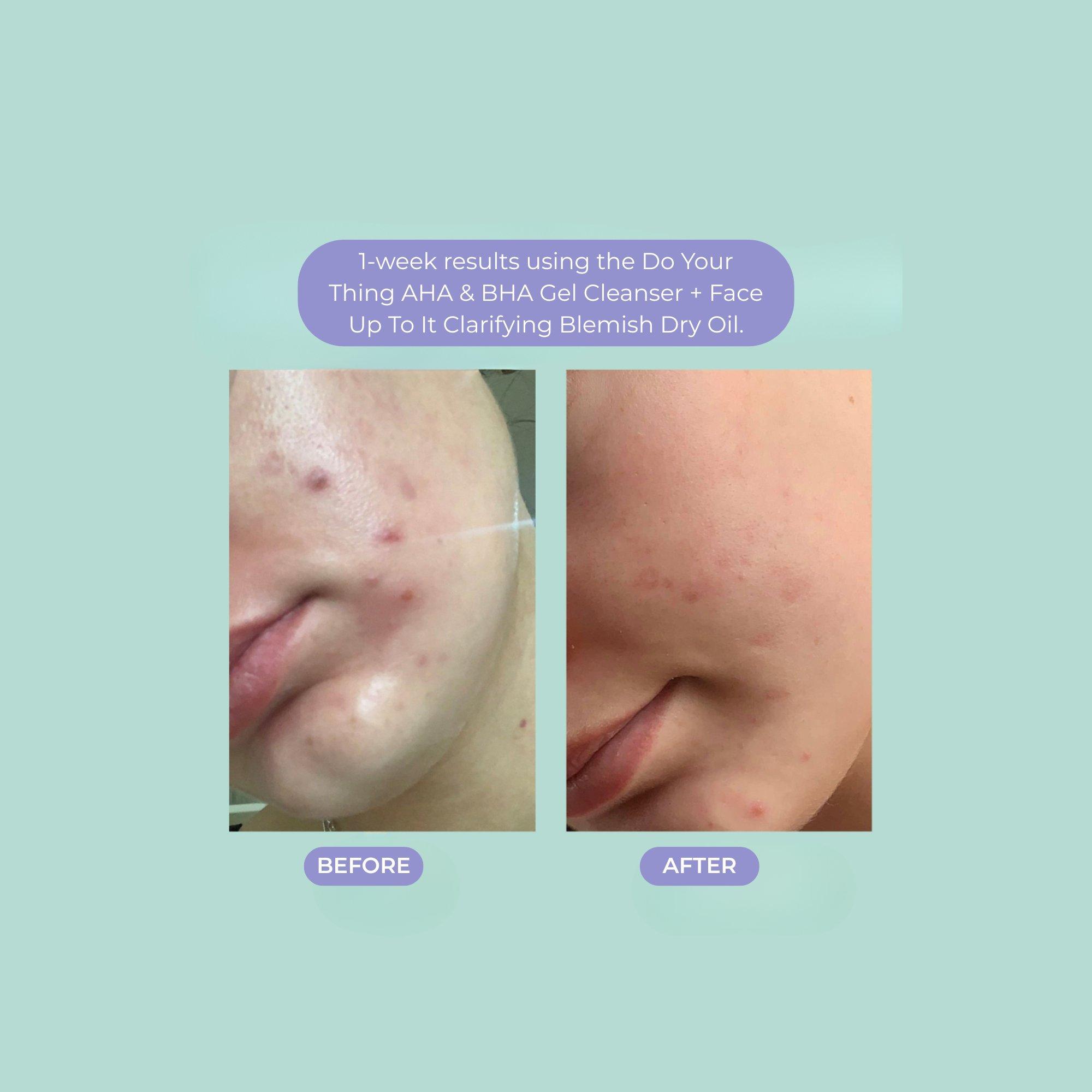 • Complete Blemish Routine – Includes cleanser, clarifying oil, and serum for clearer skin. Contains Do Your Thing AHA & BHA Gel Cleanser, Face Up To It Clarifying Dry Oil, Bright & Early Vit C Repair Serum.