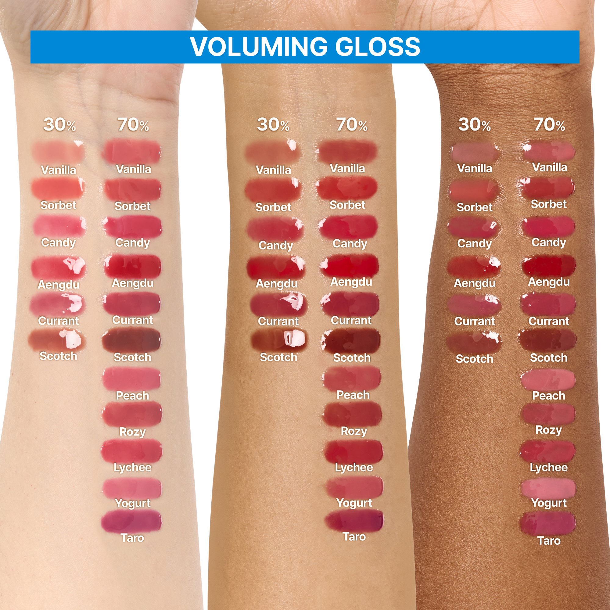 fwee's 3D Voluming Gloss 30% features a new and improved formula that's ultra-glossy, long-lasting, and never sticky - making it comfortable to wear all day. It delivers an instant volumizing glow that adds dimension to your lips, creating a radiant spotlight that truly stands out.
