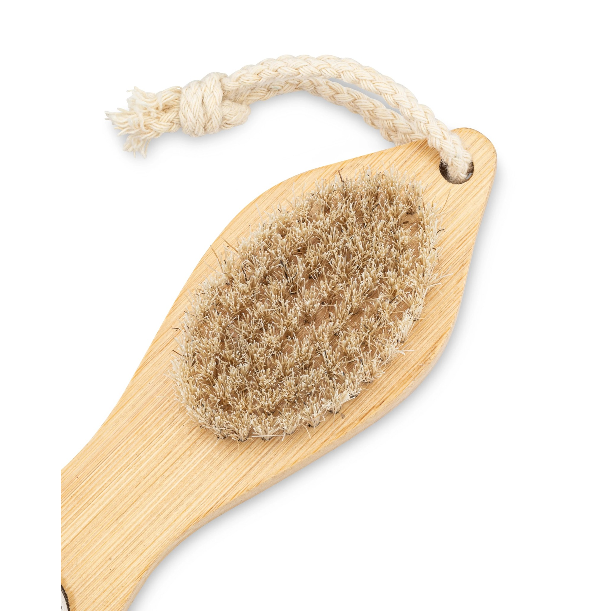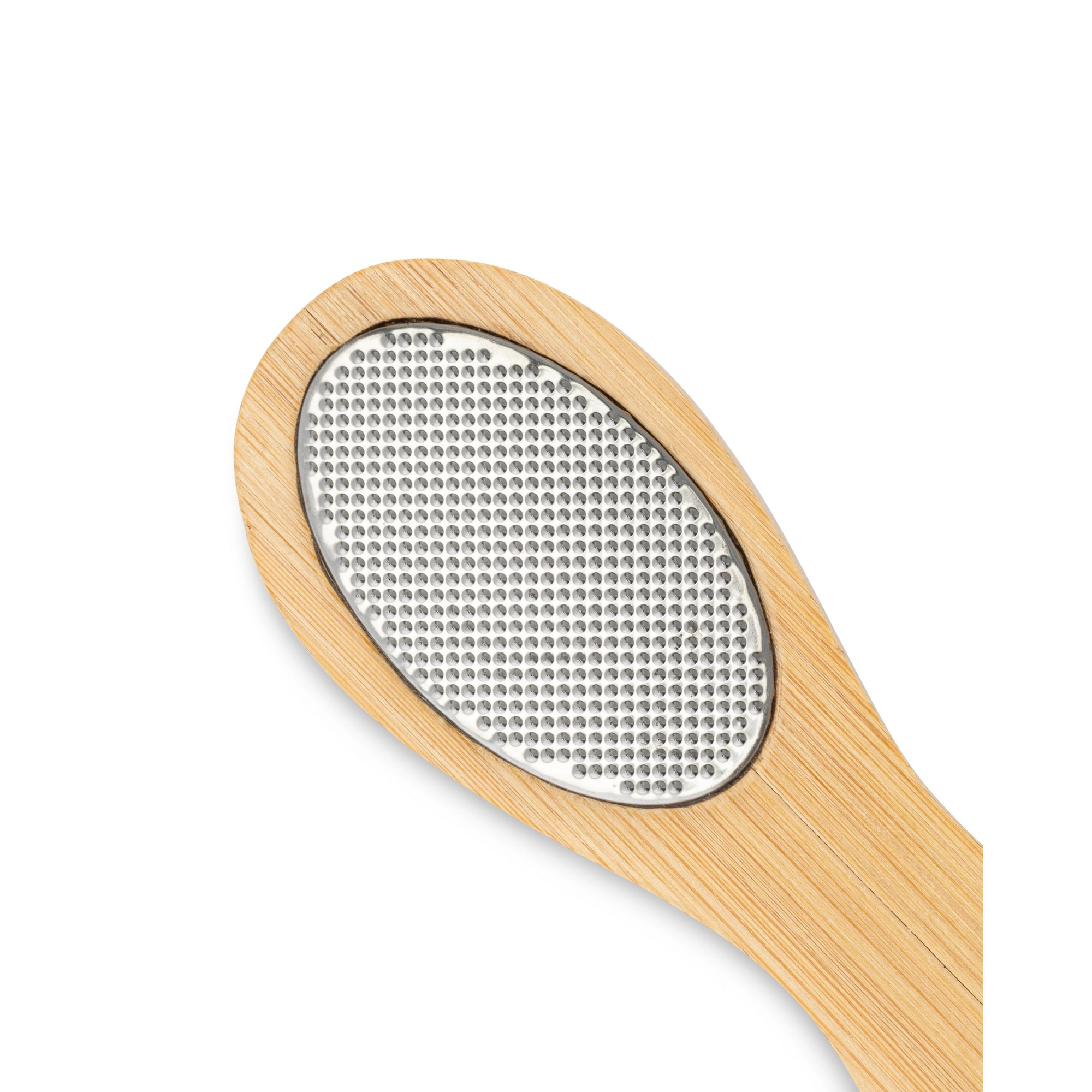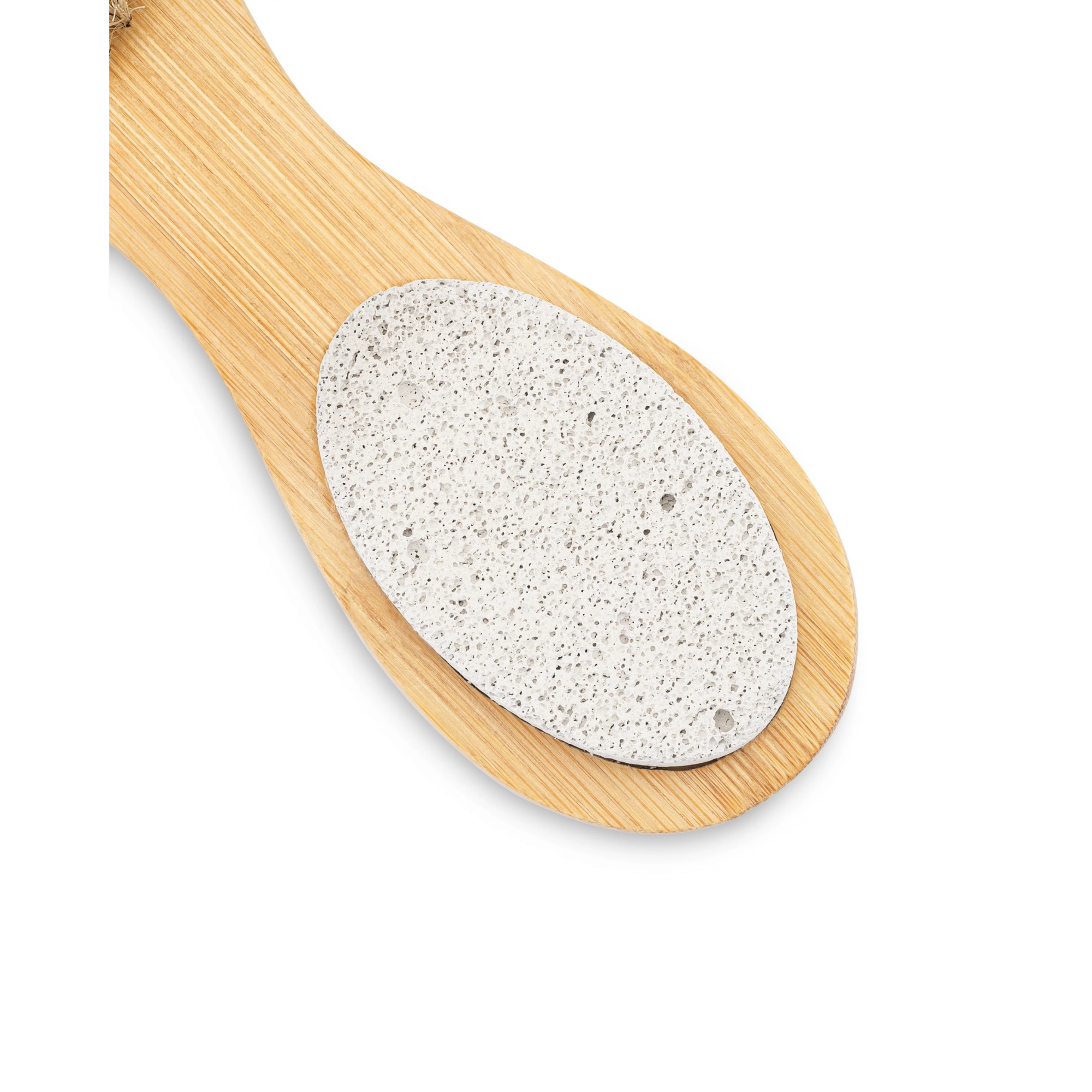 Start with dry feet. Use the dry brush to loosen surface dryness, then move to the pumice stone in gentle circular motions on callused areas. Use the stainless steel foot file to carefully remove tougher, hardened skin, keeping strokes light and even. Finish with the sandpaper surface for targeted smoothing. Rinse feet and apply moisturizer after exfoliation.