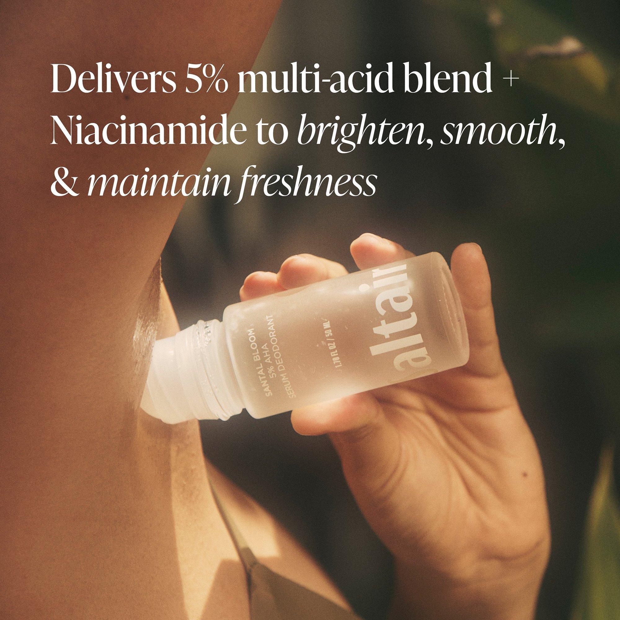 Saltair’s 5% AHA Serum Deodorant is formulated to combat odor, brighten the look of discoloration, and smooth the look of ingrown hairs.