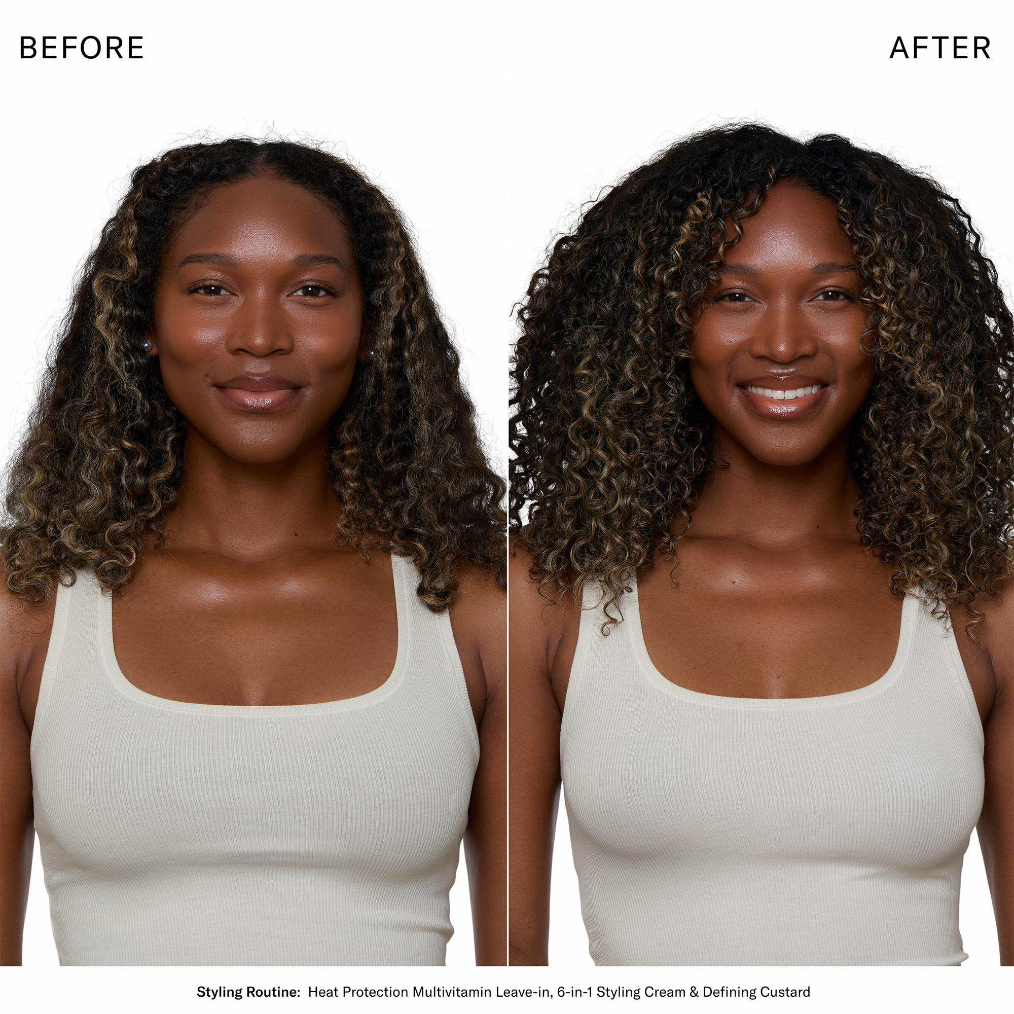 Prep hair with the Heat Protection Multivitamin Leave-In. Then follow with the 6-in-1 Styling Cream and apply onto damp hair from roots to ends, scrunch and shape curls. For hair that is naturally dry and frizz-prone, finish with the Defining Custard for lasting frizz control. Air dry or dry hair with a diffuser.