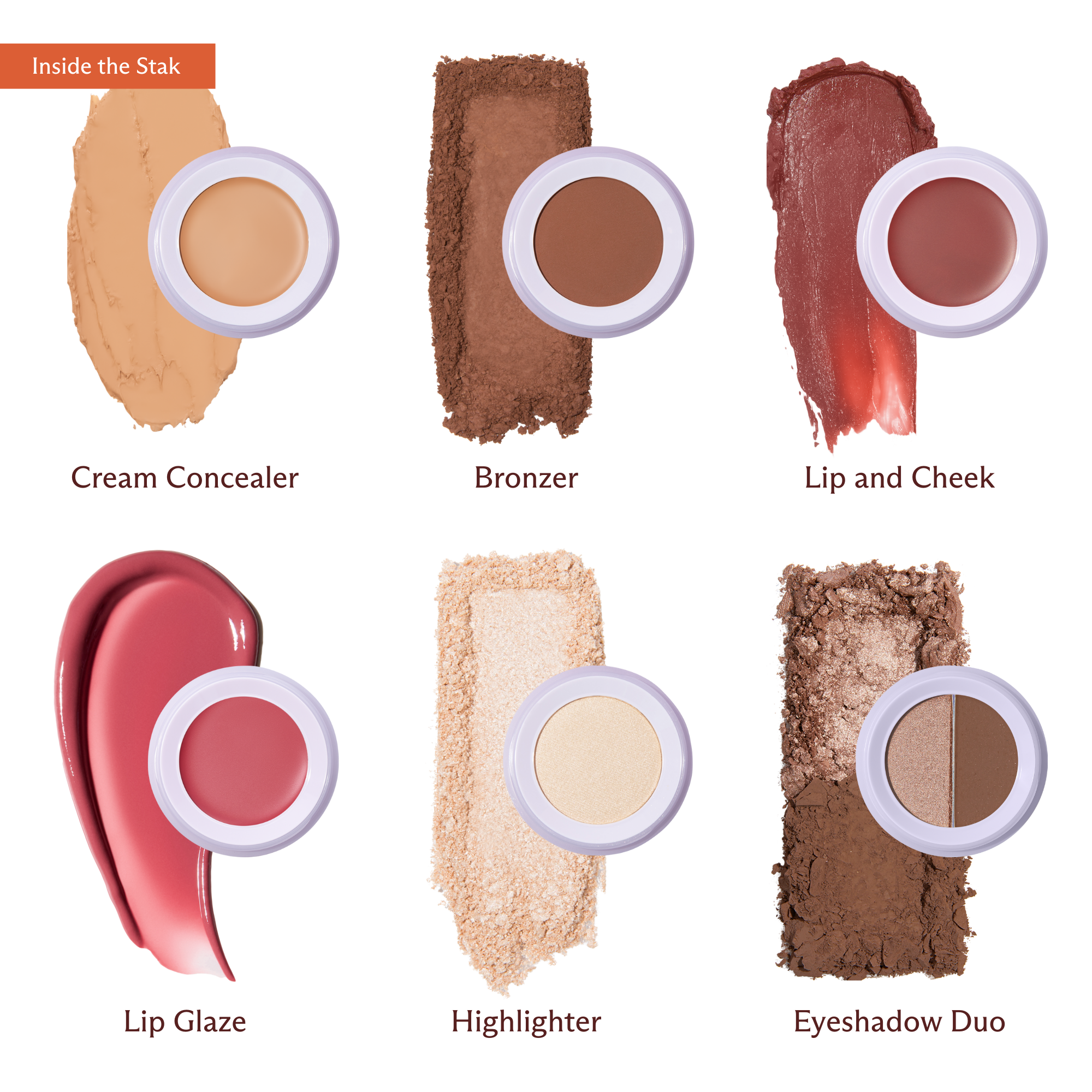 The ultimate all-in-one stackable set for a full face in minutes. Brighten with concealer, add warmth with bronzer, sweep on eyeshadow, and finish with lip, cheek, and highlighter. Kit complete with tools for effortless, everyday beauty.