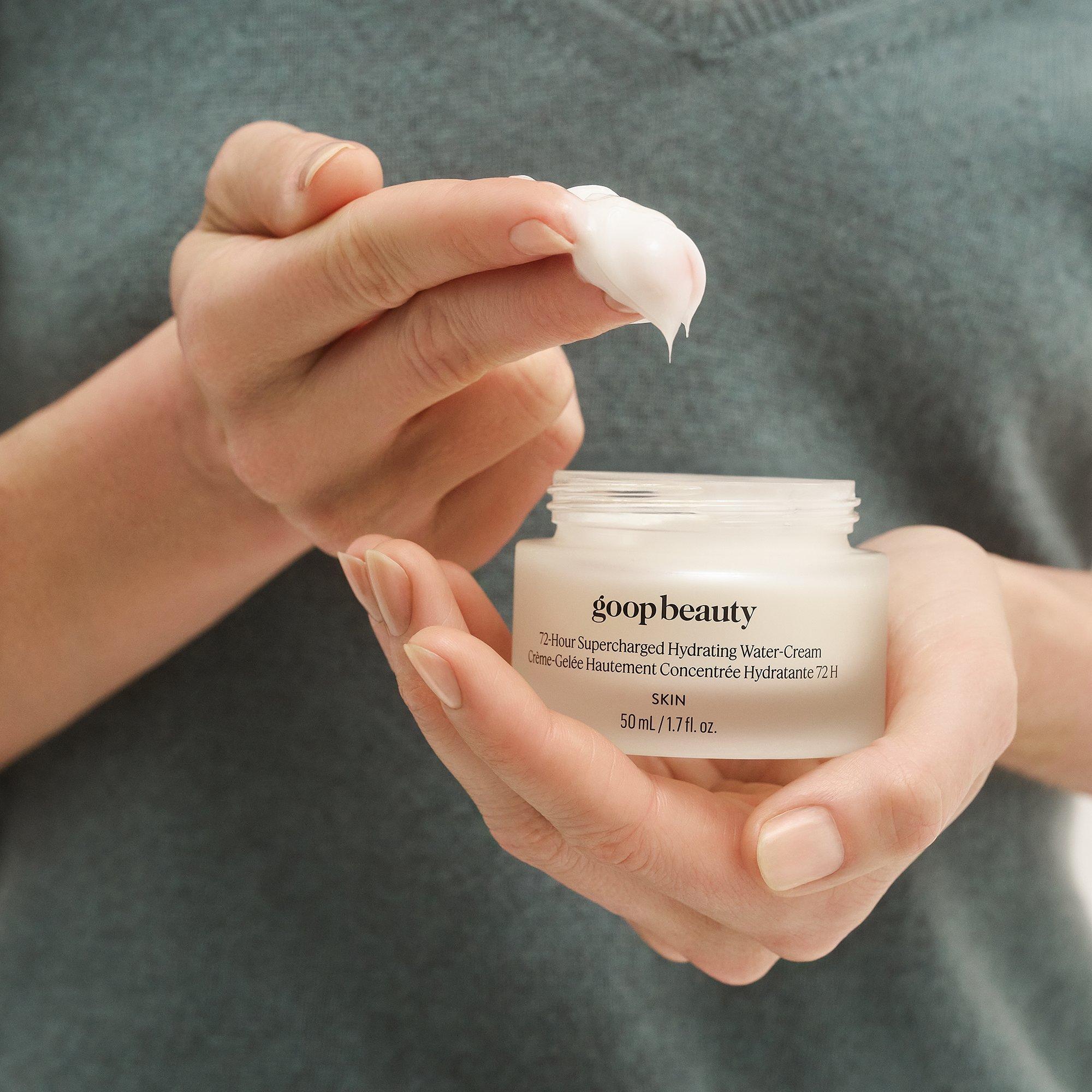 As it plumps skin with moisture for up to 72 hours, goop's 72-Hour Supercharged Hydrating Water-Cream brightens and balances skin for a satin-matte glow.