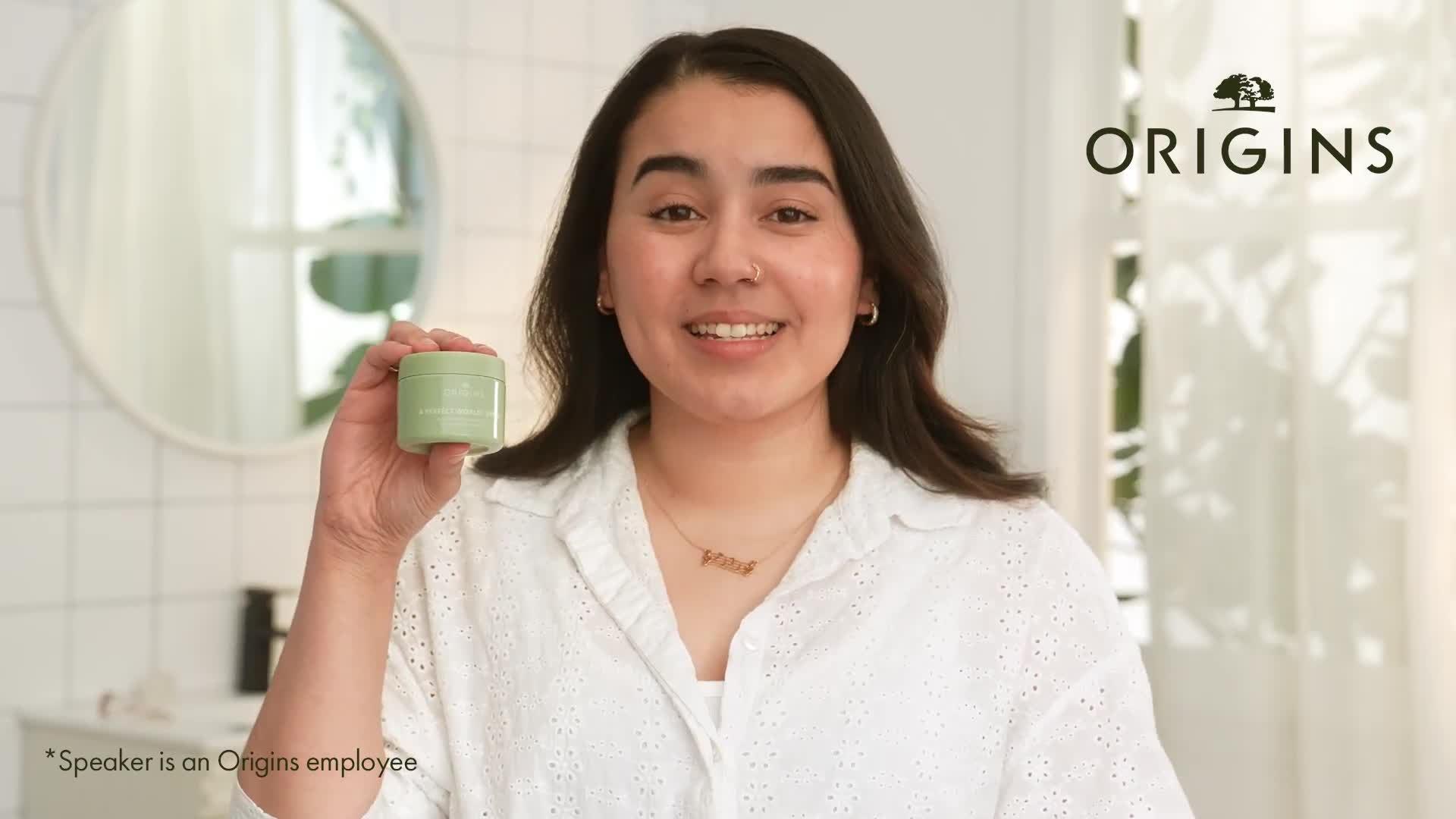 Origins A Perfect World SPF 40 Age-Defense Moisturizer is an oil-free, SPF moisturizer that infuses skin with healthy hydration, plus protection from environmental aggressors & UV rays.