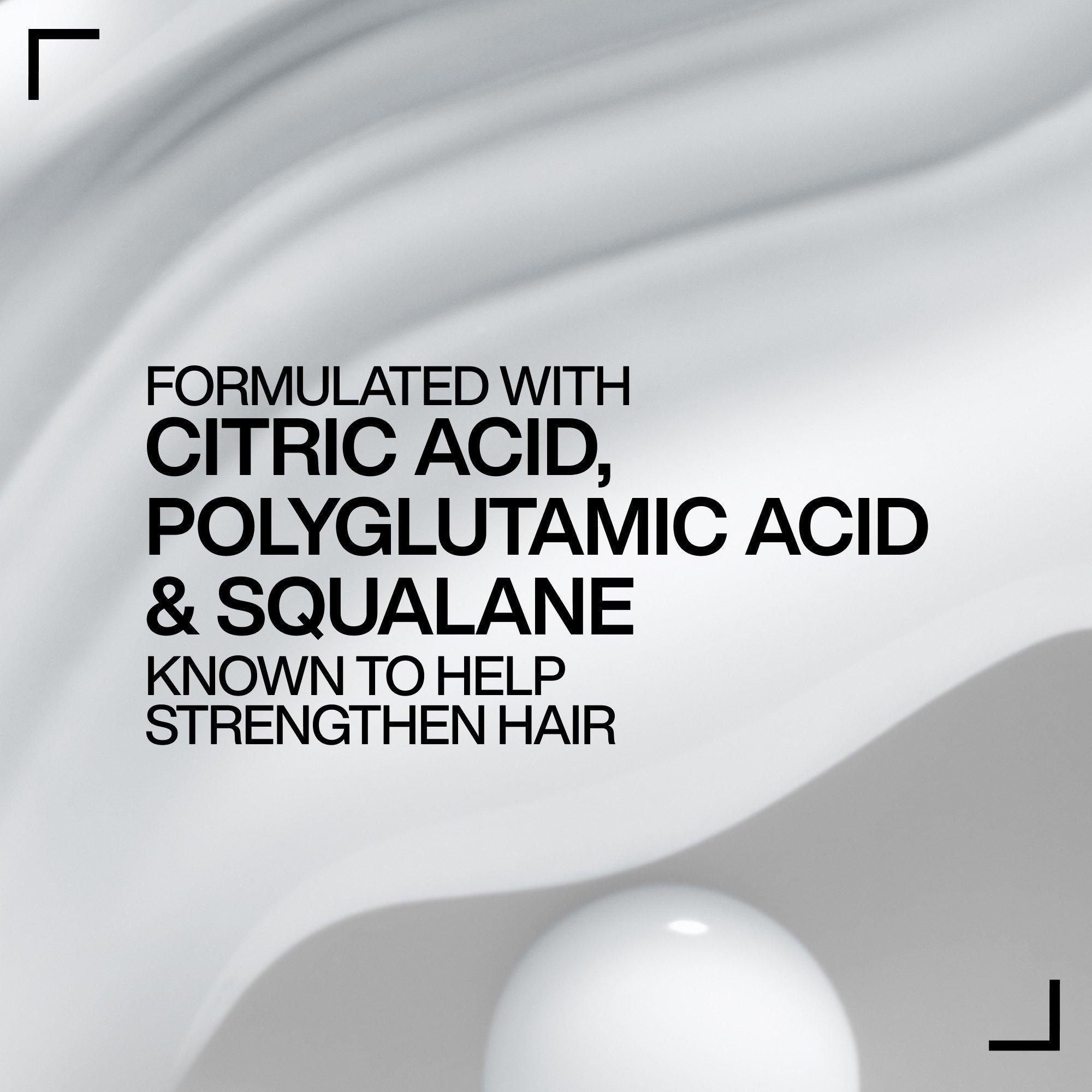 • Strengthening formula with citric acid, polyglutamic acid, and squalene