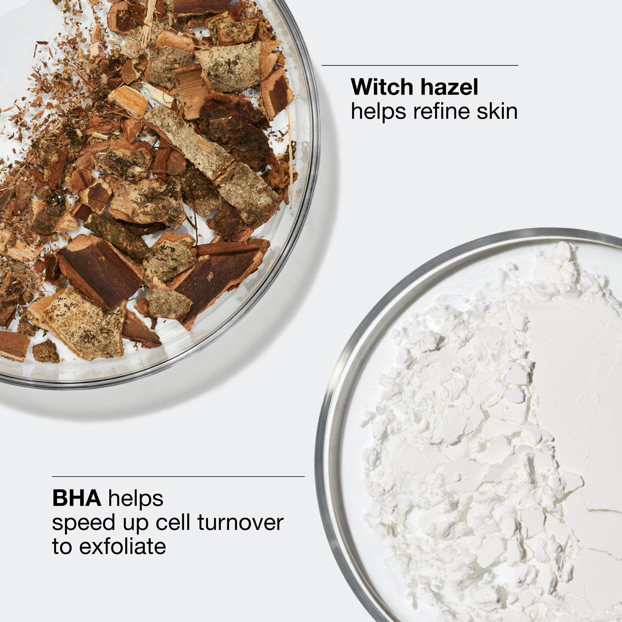 • Witch hazel: Helps refine skin