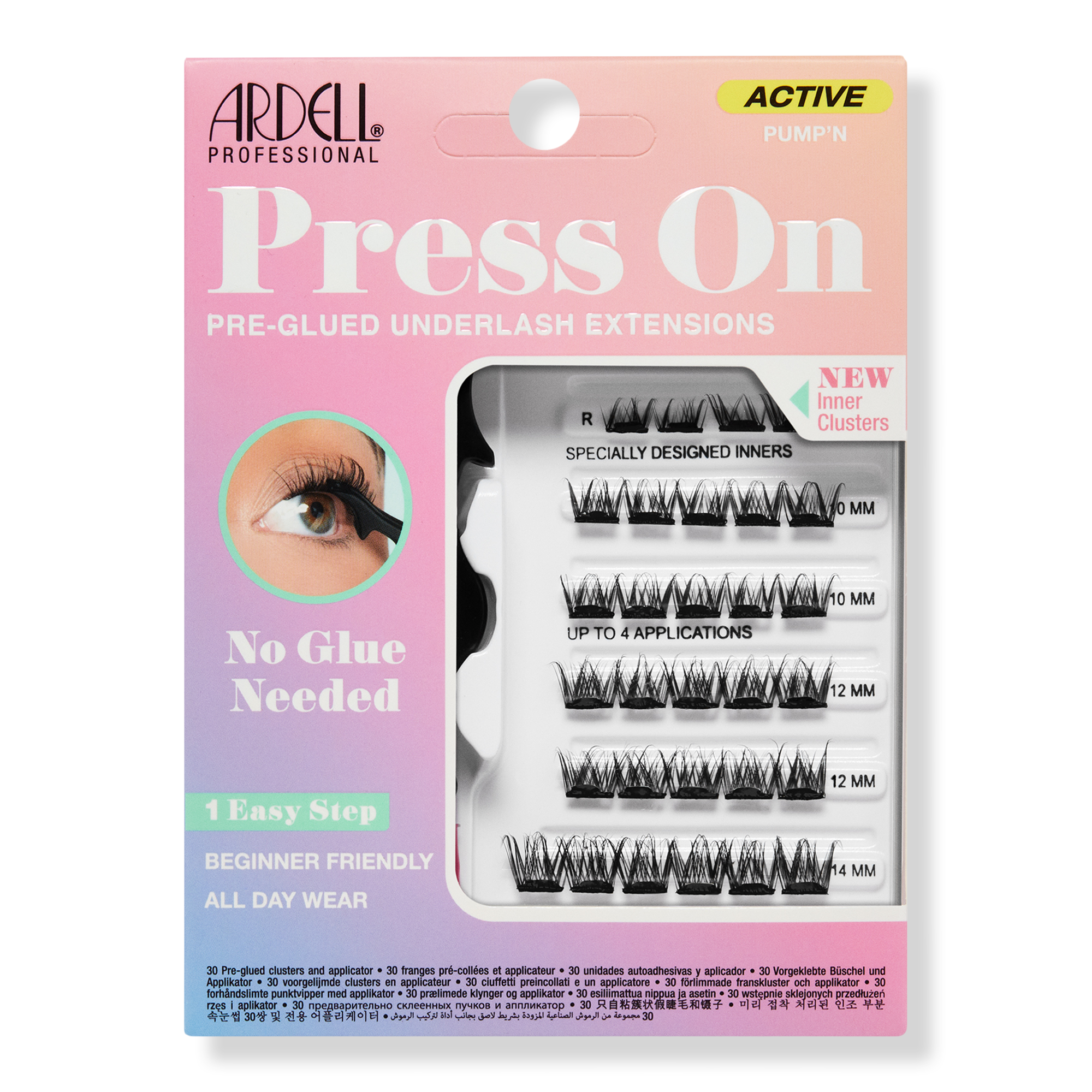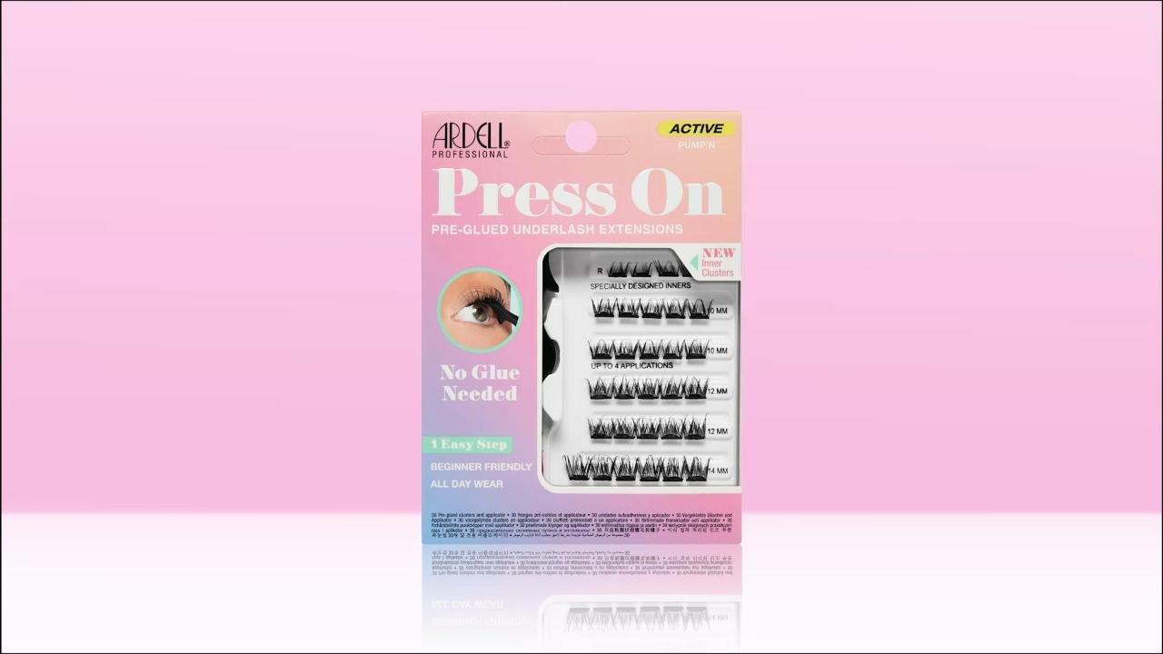 Pre-glued for easy application and all-day hold, just place, press & you’re set. Ardell's Active Press On Pre-Glued Underlash Extensions retain their 3D curl through endless activities, for a lift that won't quit. They’re perfect for working out without looking like you have falsies on.