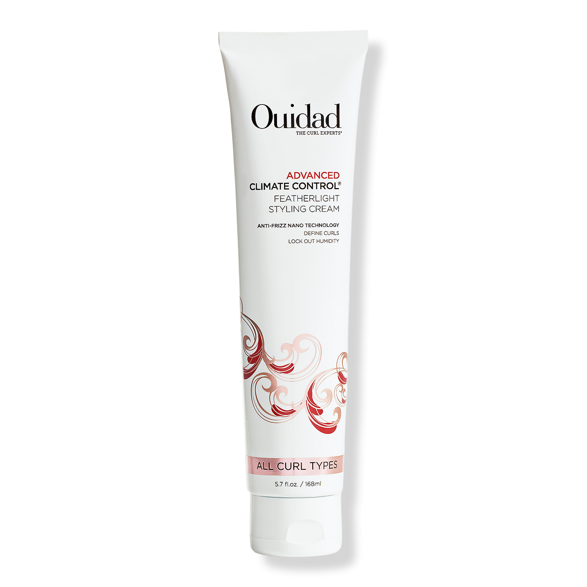 Ouidad's Advanced Climate Control Featherlight Styling Cream defines curls and defends against frizz with an ultra-light, pillow-soft hold.