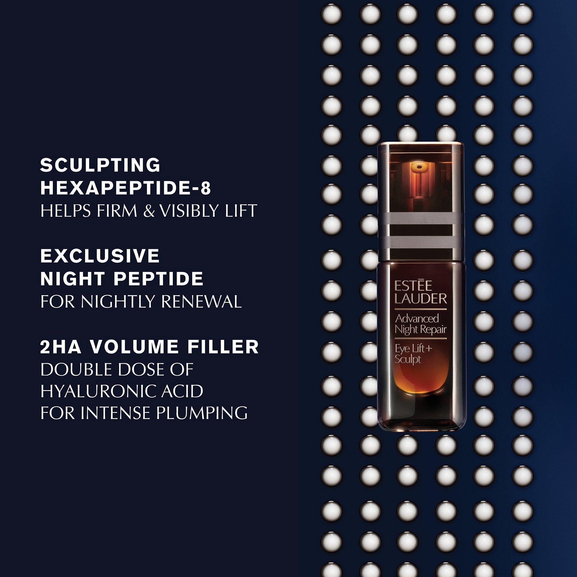 The derm-advanced Eye Lift: inspired by injectables the Estée Lauder Advanced Night Repair Eye Lift + Sculpt Eye Cream targets all 4 eye dimensions: undereyes, lids, crow's feet, inner corners. Visibly lifts and sculpts the entire eye area.