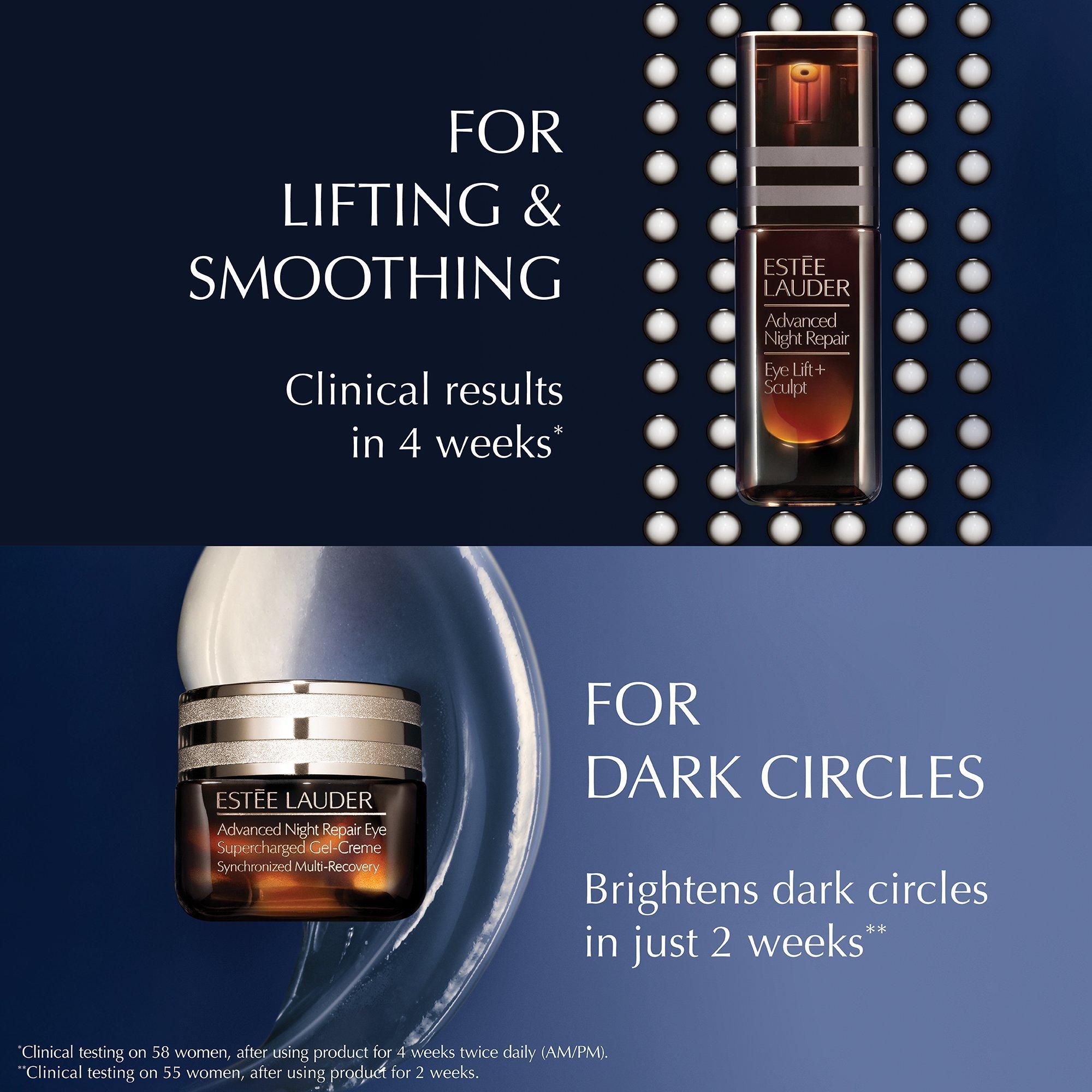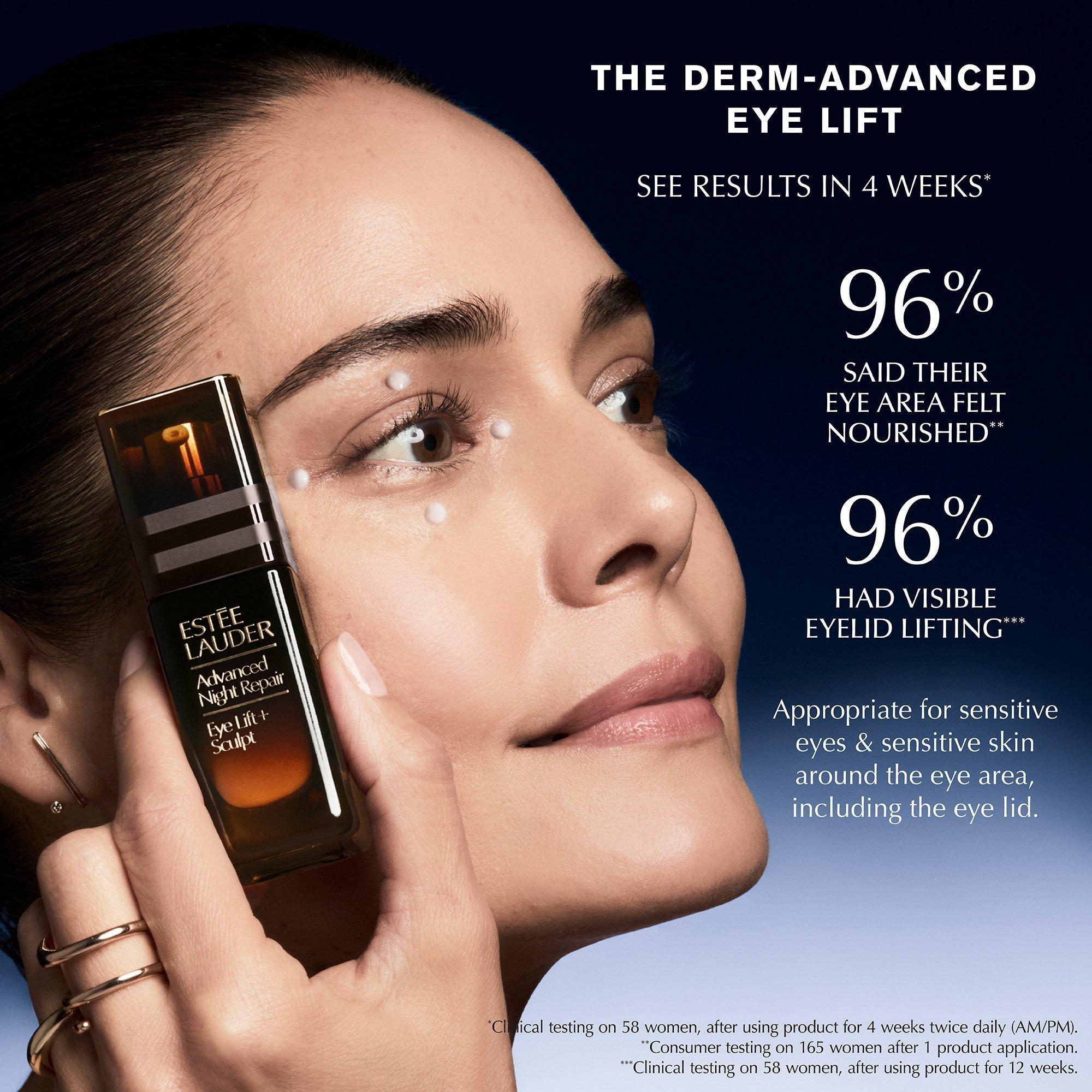 The derm-advanced Eye Lift: inspired by injectables the Estée Lauder Advanced Night Repair Eye Lift + Sculpt Eye Cream targets all 4 eye dimensions: undereyes, lids, crow's feet, inner corners. Visibly lifts and sculpts the entire eye area.