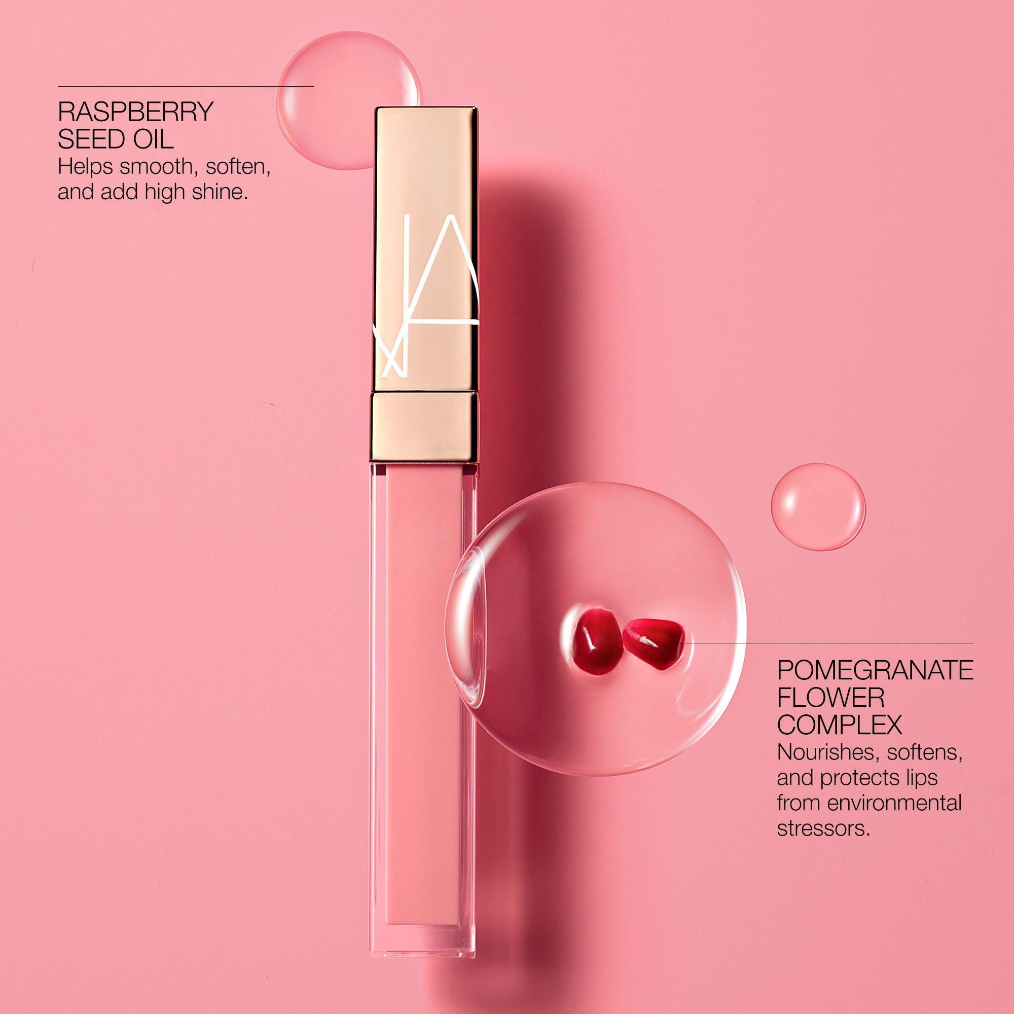 NARS Afterglow Lip Shine is a comfortable lip gloss formula that effortlessly glides on mirror-like shine and hydrates lips for up to eight hours.