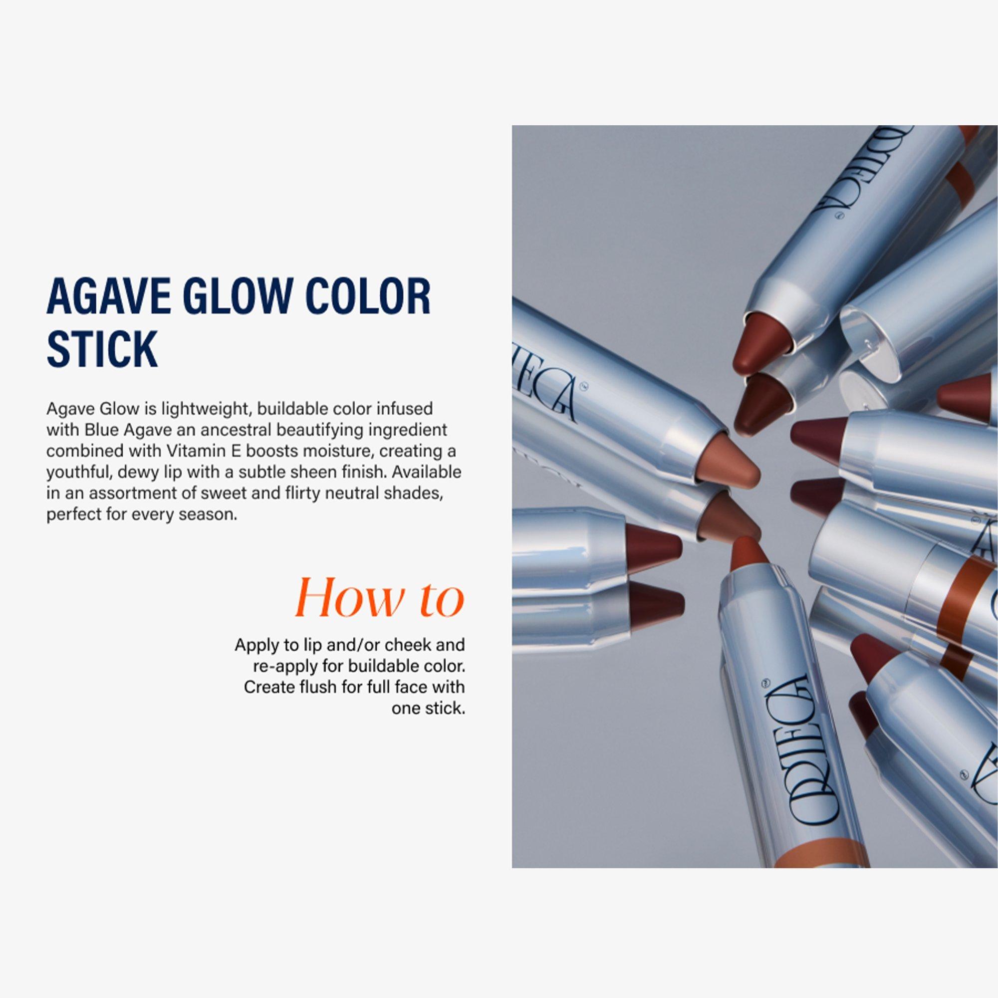 Agave Glow is lightweight, buildable color infused with Blue Agave an ancestral beautifying ingredient combined with Vitamin E boosts moisture, creating a youthful, dewy lip with a subtle sheen finish. Available in an assortment of sweet and flirty neutral shades, perfect for every season.
