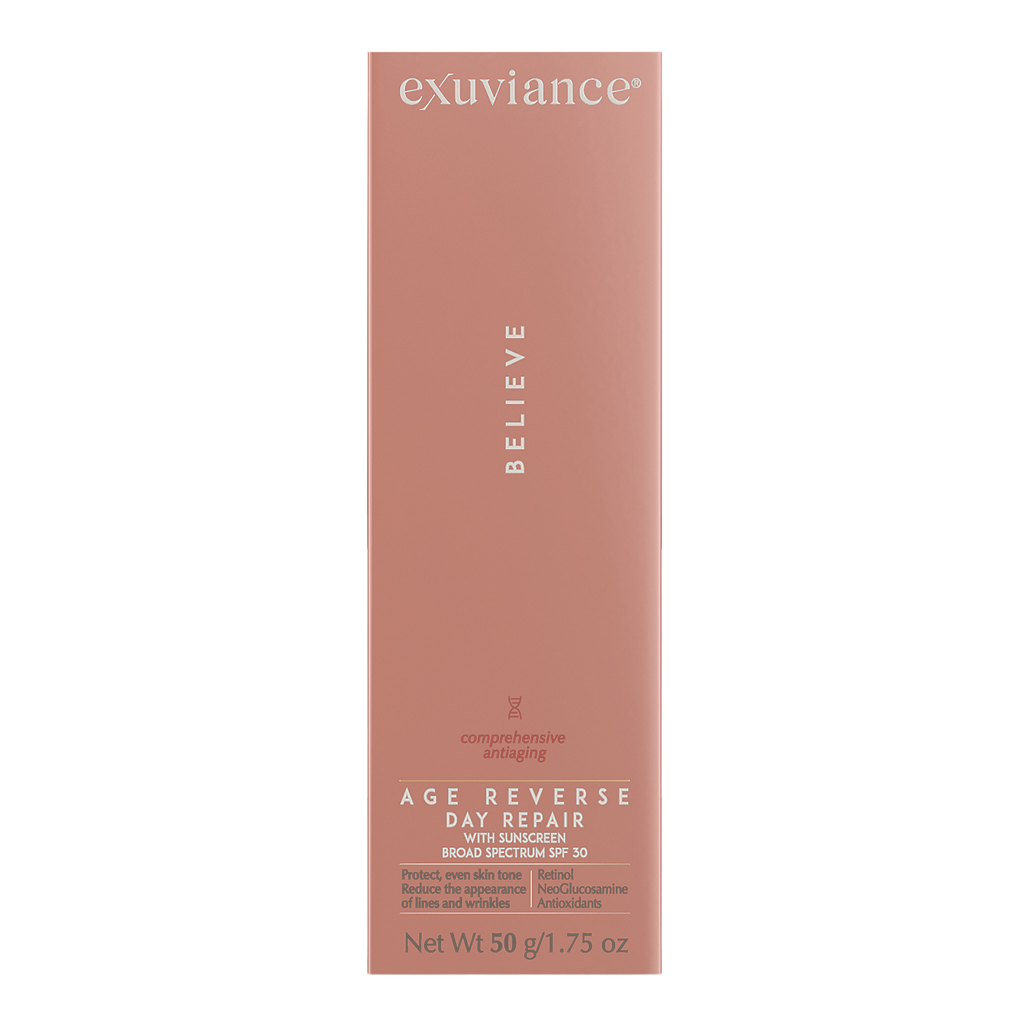 Exuviance AGE REVERSE Day Repair SPF 30 + Retinol Antiaging Face Moisturizer is a daytime rejuvenating treatment with Broad Spectrum Sunscreen SPF 30, Retinol, Peptides and antioxidants for a more even, luminous and youthful-looking complexion.