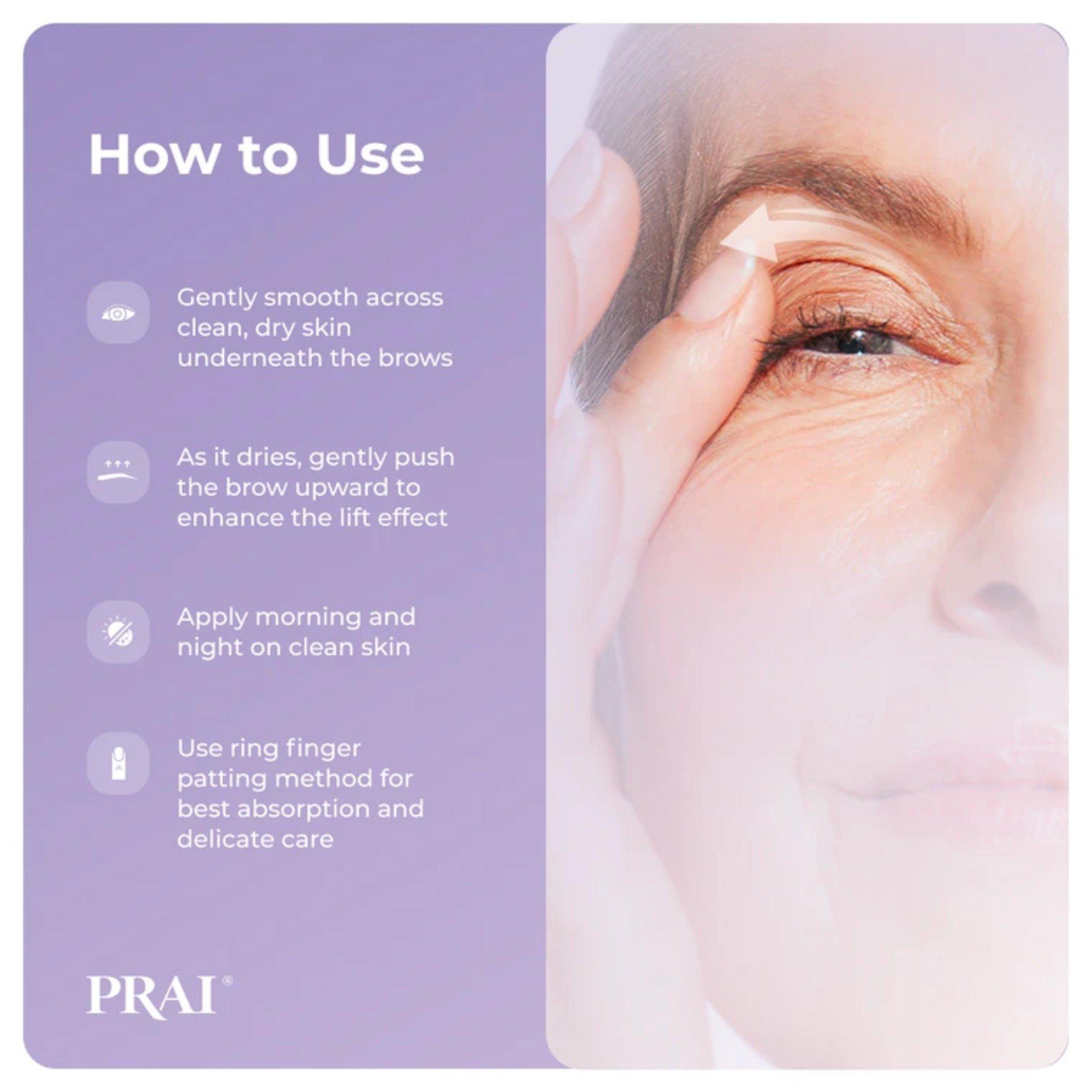 Gently smooth Ageless Eye Tight Uplift Serum across clean skin underneath the brows then gently push the brow upwards as the serum dries, to help create a lifting effect. Apply morning and night for best results.