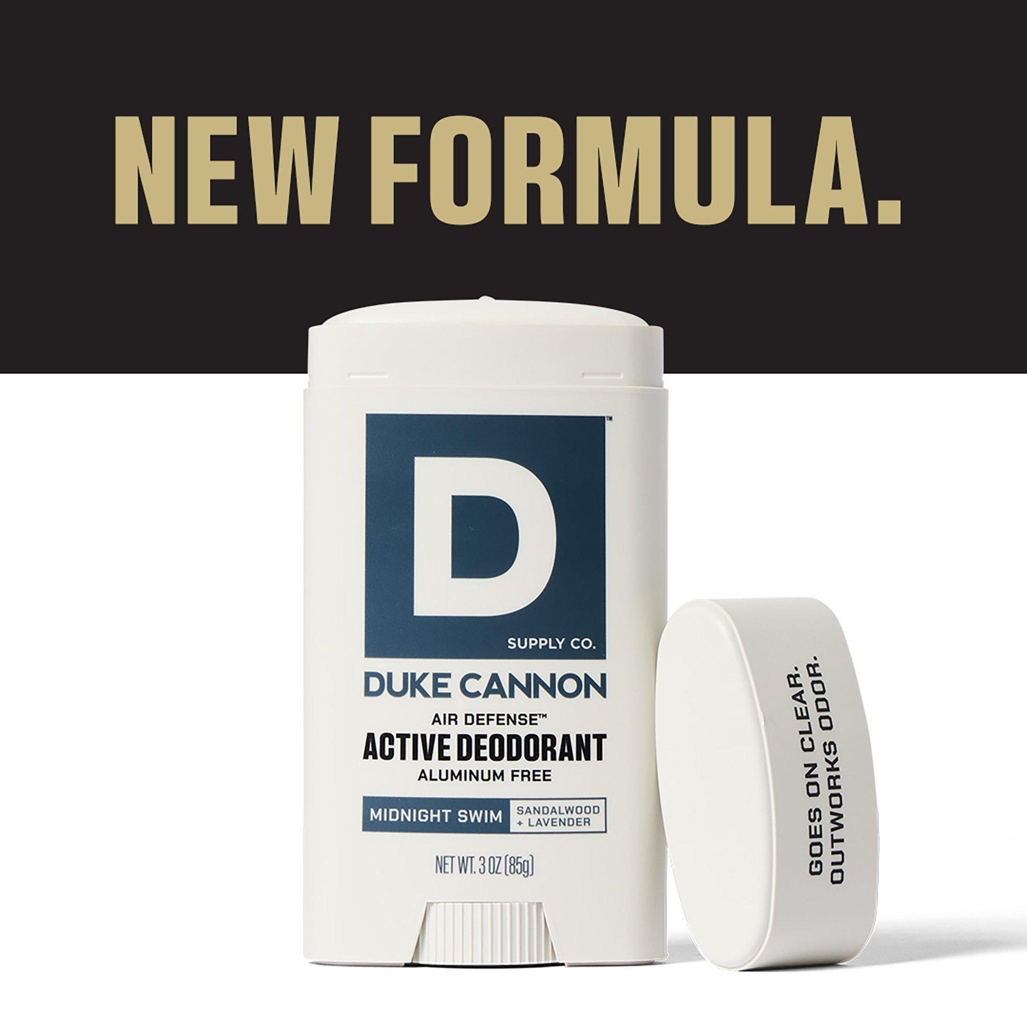 Duke Cannon's Air Defense Active Deodorant Aluminum Free is potent, mess-free and glides on clear to deliver 3x active defense, plus aloe vera and vitamin E to help skin feel comfortable.