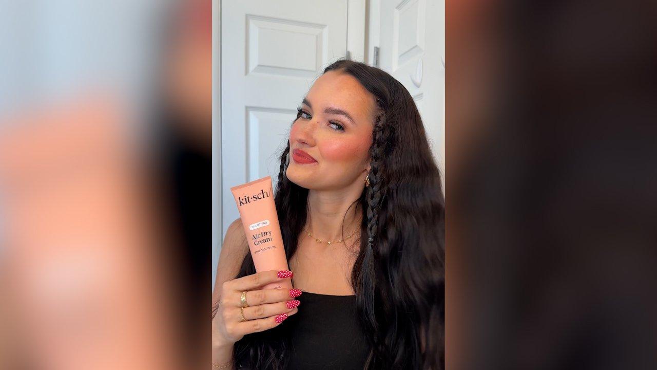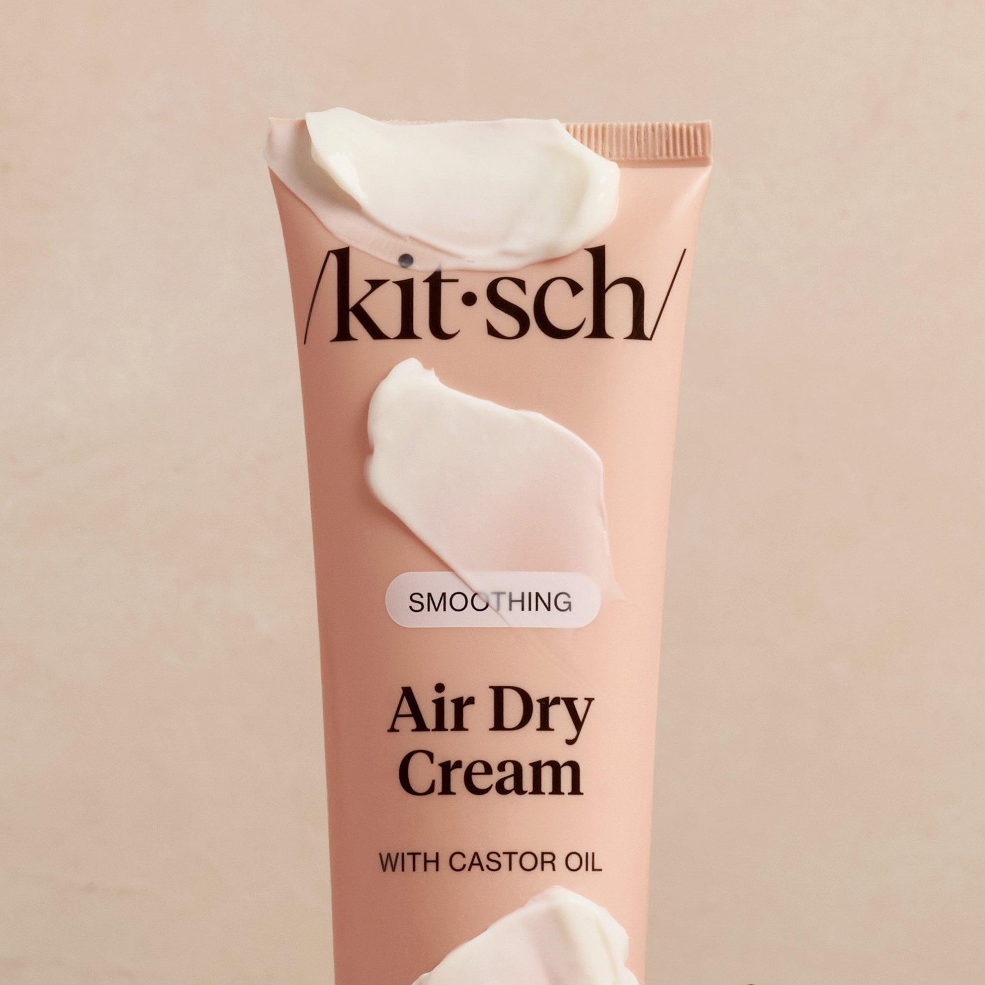 An air dry so good, it looks straight from the salon. Kitsch Smoothing Air Dry Cream enhances the appearance of natural texture and locks down frizz for up to 24 hours* with a weightless blend of castor oil, squalane, and coconut oil.