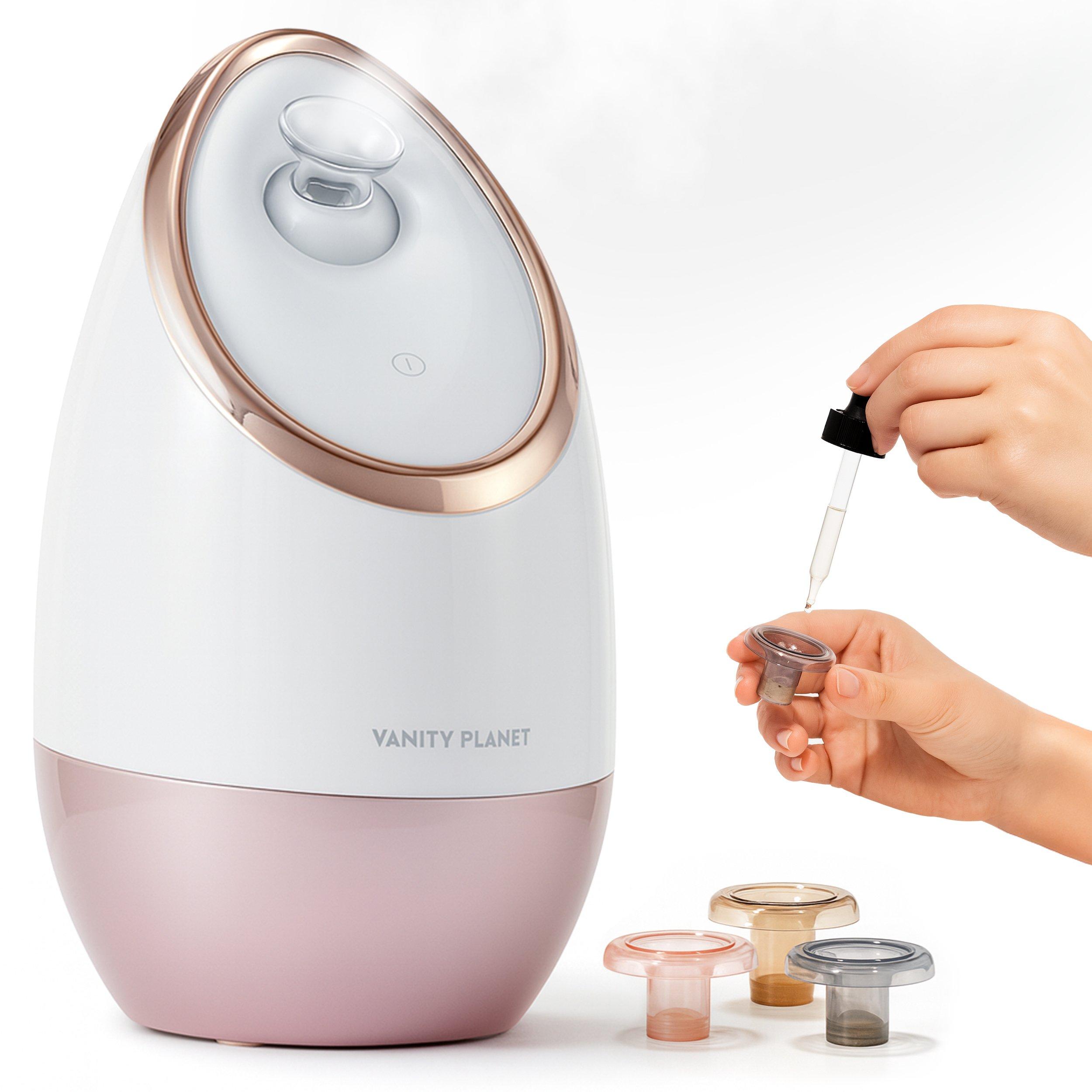 The Aira Ionic Facial Steamer, Vanity Planet’s professional-grade device for deep pore cleansing and intense hydration. Using advanced nano-steam technology, Aira penetrates deeply to detoxify pores, boost moisture, and enhance the absorption of your favorite skincare products.
