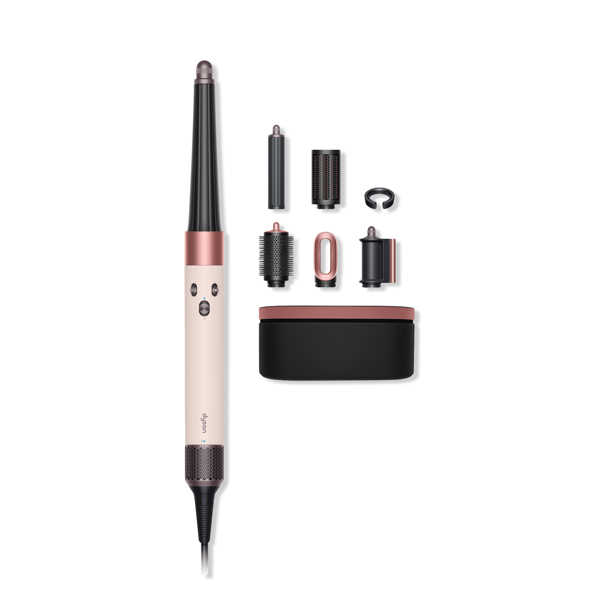The Dyson AirwrapTM now with a Bluetooth enabled curling feature through the MyDyson app for one touch, personalized styling. A faster, easier way to achieve more consistent curls with no heat damage.^ Includes barrels to curl, dryers to prepare and finish and brushes to shape, smooth and volumize.