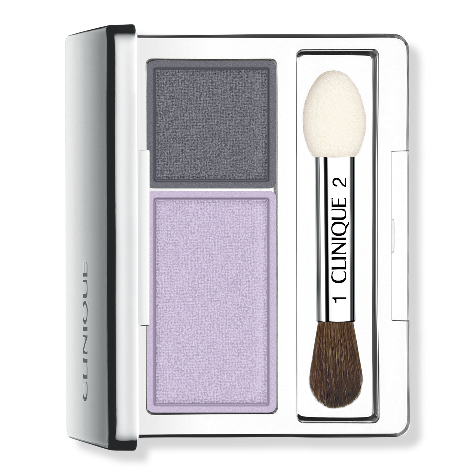 Use the brush side of the eyeshadow applicator to sweep one shade across the entire lid, from your lashline to your brow bone. Use the sponge tip to create dimension with the complementing shade. Layer and blend the color into the crease and/or along your lashline. Remove with Clinique Take The Day Off Makeup Remover For Lids, Lashes \& Lips.