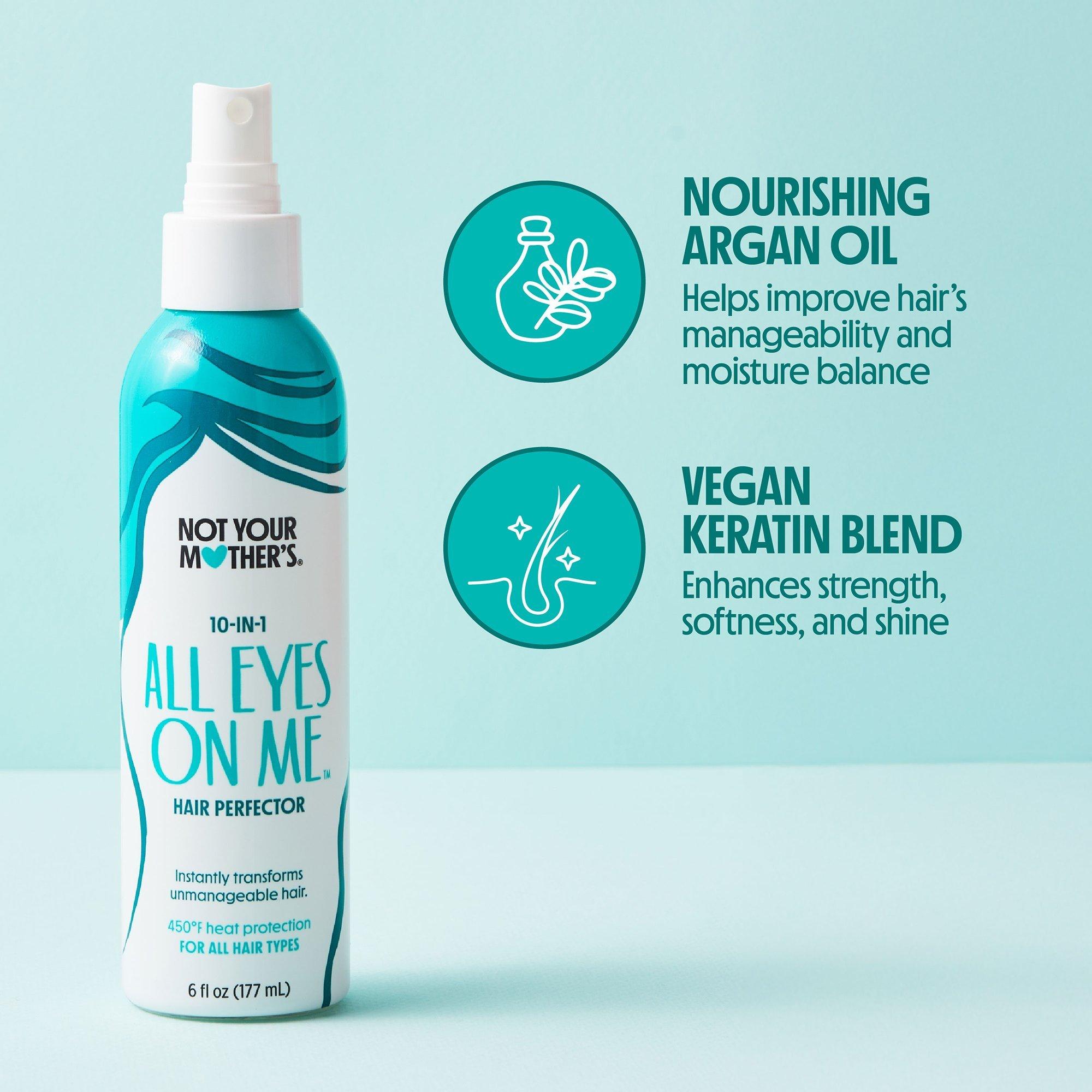 So many hair needs, so little time. With just a quick spritz of Not Your Mother's All Eyes On Me 10-in-1 Hair Perfector you've already managed to control frizz, detangle, moisturize, and protect your hair from 450°F heat. Now you can simplify your routine without sacrificing what you need.
