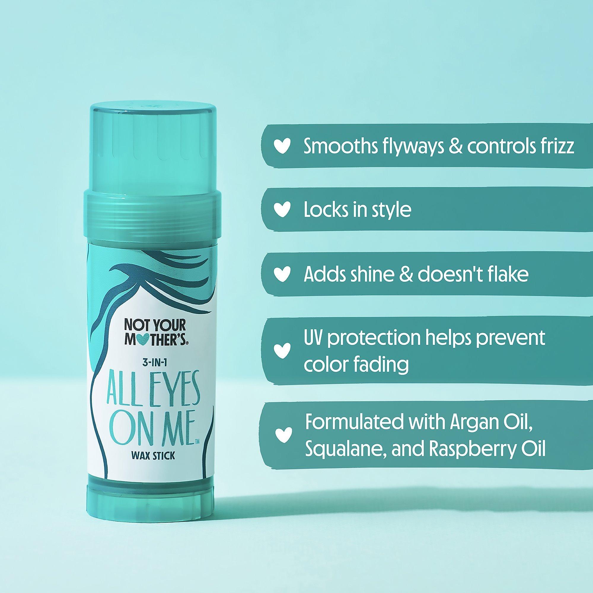 Effortlessly create slicked back styles with Not Your Mother's All Eyes On Me 3-in-1 Wax Hair Stick. This hydrating, long-lasting, no-flake styling hair stick wax is formulated with Argan Oil, Squalane & Raspberry Oil that glides on to tame flyaways, lock in style, and provide UV hair protection.