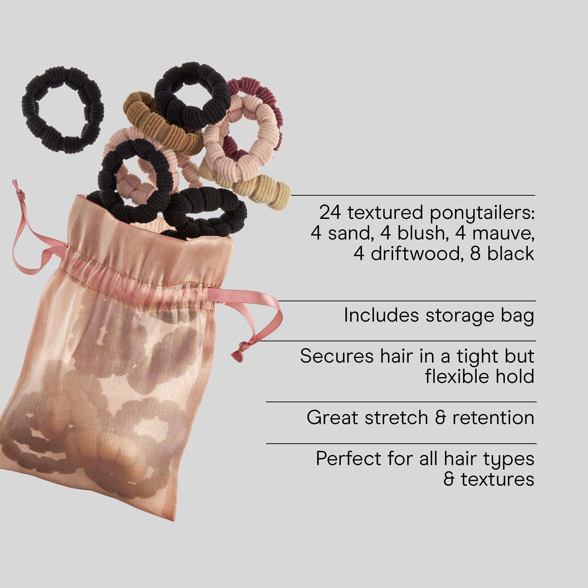 • 24 textured hair ties built for all hair types