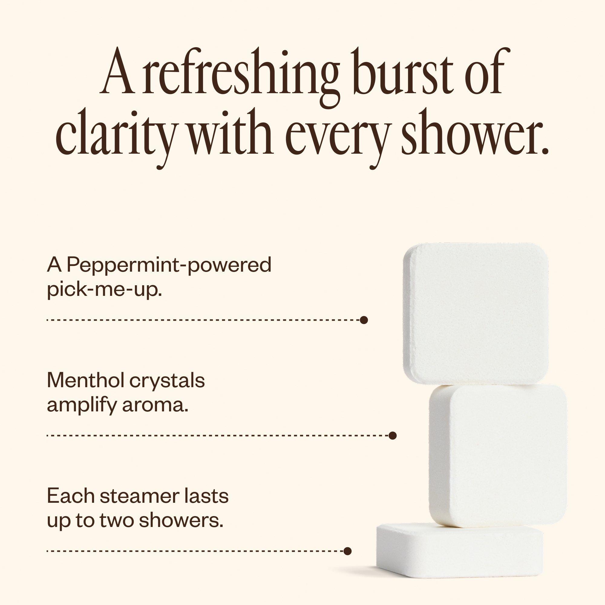 Place steamer on the floor of your shower. The steamer will slowly fizz while releasing aromatics into the air.