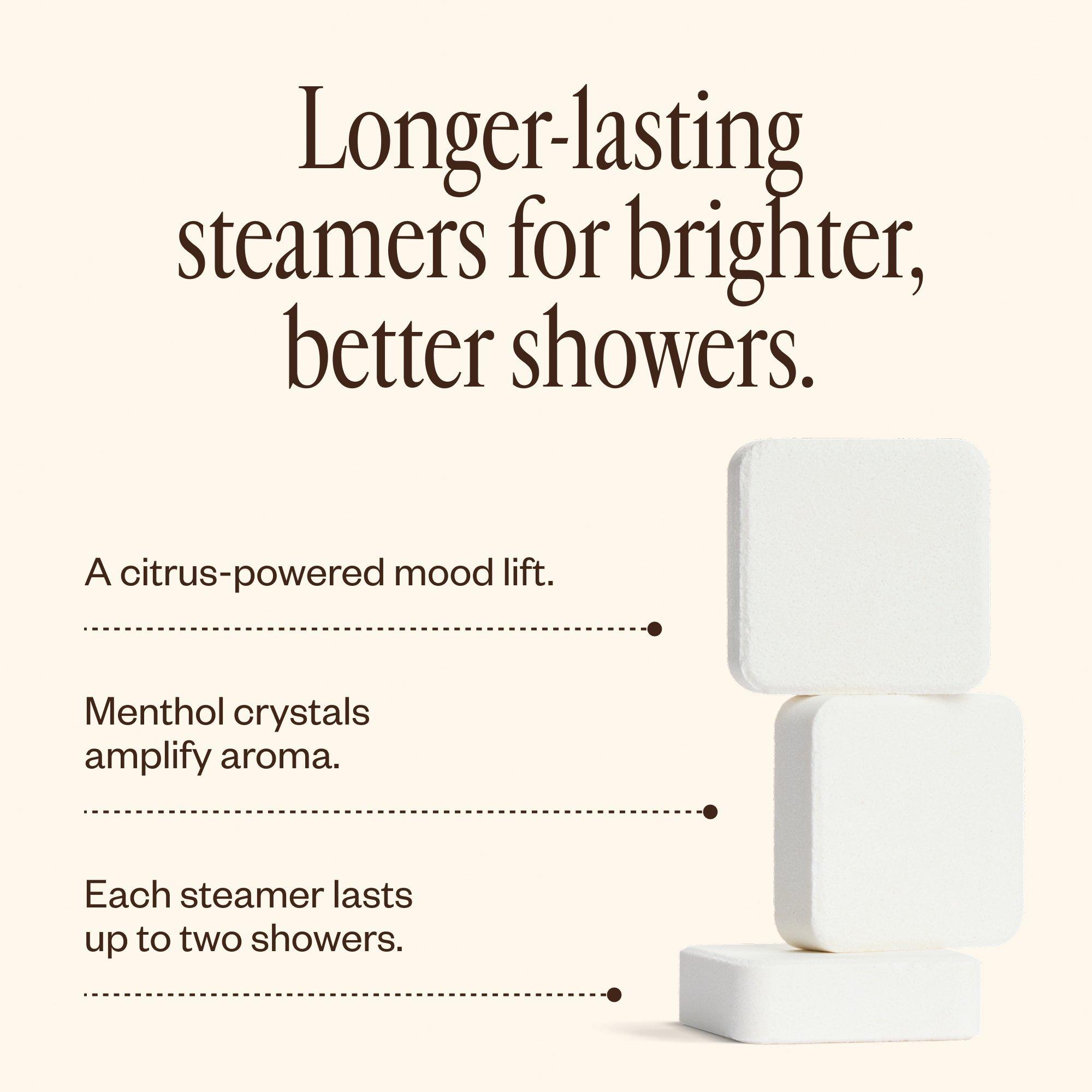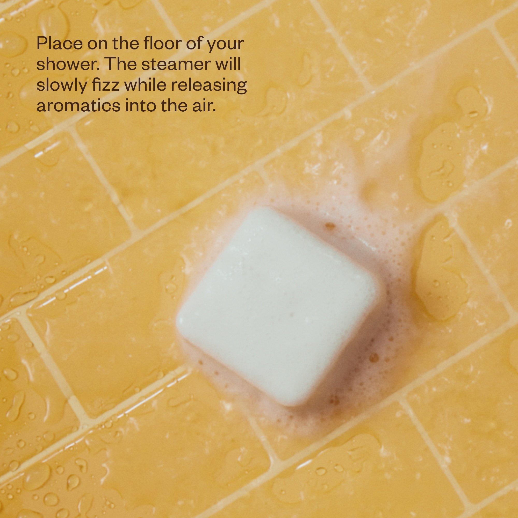 Place steamer on the floor of your shower. The steamer will slowly fizz while releasing aromatics into the air.