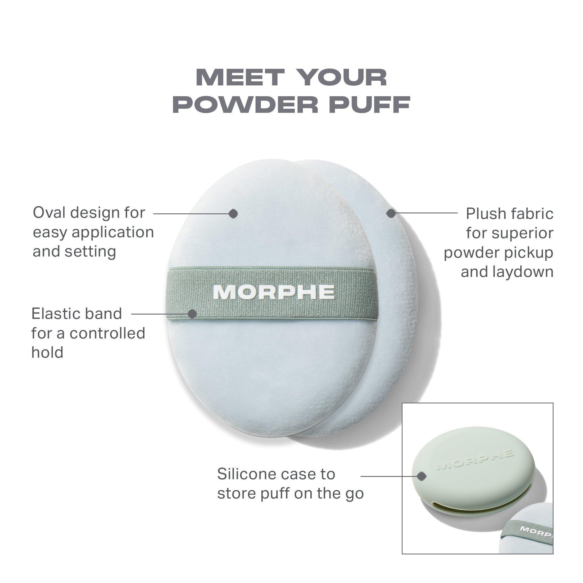Get all set with Morphe's All Set Touch-Up Powder Puff. This plush puff with an on-the-go case perfectly picks up and lays down powder to seamlessly set or touch up your complexion. The shape maneuvers effortlessly around the contours of your face, with an elastic band for a controlled hold.