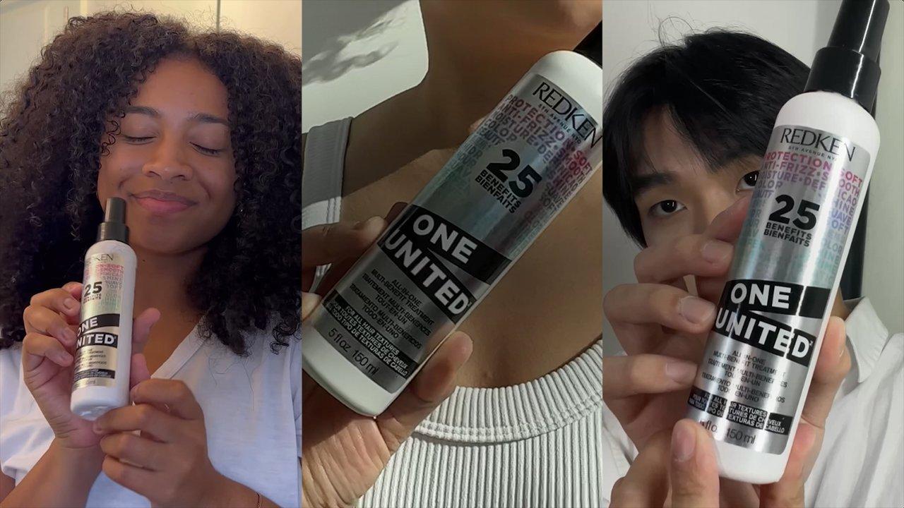 Shampoo: Aqua/Water/Eau, Sodium Laureth Sulfate, Sodium Chloride, Cocamidopropyl Betaine, Dimethicone, Parfum/Fragrance, Sodium Benzoate, Amodimethicone, Carbomer, Glycerin, Guar Hydroxypropyltrimonium Chloride, Trideceth-10, Salicylic Acid, Hexylene Glycol, Glycol Distearate, Citric Acid, Mica, Sodium Cocoyl Amino Acids, Peg-100 Stearate, Phenoxyethanol, Steareth-6, Trideceth-3, Potassium Dimethicone Peg-7 Panthenyl Phosphate, CI 77891/Titanium Dioxide, Sodium Sarcosinate, Benzyl Alcohol, Propylene Glycol, Coumarin, Linalool, Peg-45M, Benzyl Benzoate, Hexyl Cinnamal, Limonene, Aloe Barbadensis Leaf Juice Powder, Arginine, Hydrolyzed Soy Protein, Plukenetia Volubilis Seed Oil, Caramel, Acetic Acid, Fumaric Acid, Hydrolyzed Vegetable Protein Pg-Propyl Silanetriol, Cereus Grandiflorus Flower Extract/Cactus Flower Extract, Glucose, Lactic Acid, Potassium Sorbate, Tetrasodium Edta, BHT, Tocopherol, Sodium Hydroxide Conditioner: Aqua/Water, Cetearyl Alcohol, Behentrimonium Chloride, Elaeis Guineensis Oil/Palm Oil, Cetyl Alcohol, Isopropyl Alcohol, Phenoxyethanol, Stearamidopropyl Dimethylamine, Octyldodecanol, Sodium Pca, Parfum/Fragrance, Citric Acid, Sodium Cocoyl Amino Acids, Chlorhexidine Dihydrochloride, Stearyl Alcohol, Myristyl Alcohol, Potassium Dimethicone Peg-7 Panthenyl Phosphate, Sodium Sarcosinate, Propylene Glycol, Argania Spinosa Kernel Oil, Arginine, Hydrolyzed Soy Protein, Hydrolyzed Vegetable Protein Pg-Propyl Silanetriol, Sodium Chloride, Tetrasodium Edta, Potassium Sorbate (D184537/1) One United Leave-In Spray: Aqua / Water / Eau, Cocos Nucifera Oil / Coconut Oil, Amodimethicone, Polyquaternium-37, Phenoxyethanol, Propylene Glycol Dicaprylate / Dicaprate, Parfum / Fragrance, Acetamide MEA, Lactamide MEA, Dimethicone PEG-7 Phosphate, PPG-1 Trideceth-6, Trideceth-6, Behentrimonium Chloride, Xylose, Lactic Acid, Ethylhexylglycerin, Cetrimonium Chloride, Hydrolyzed Vegetable Protein PG-Propyl Silanetriol, Citronellol, Geraniol, Linalool, Alpha-Isomethyl Ionone, Viola Odorata Extract, Viola Odorata Flower / Leaf Extract, Sodium Hydroxide