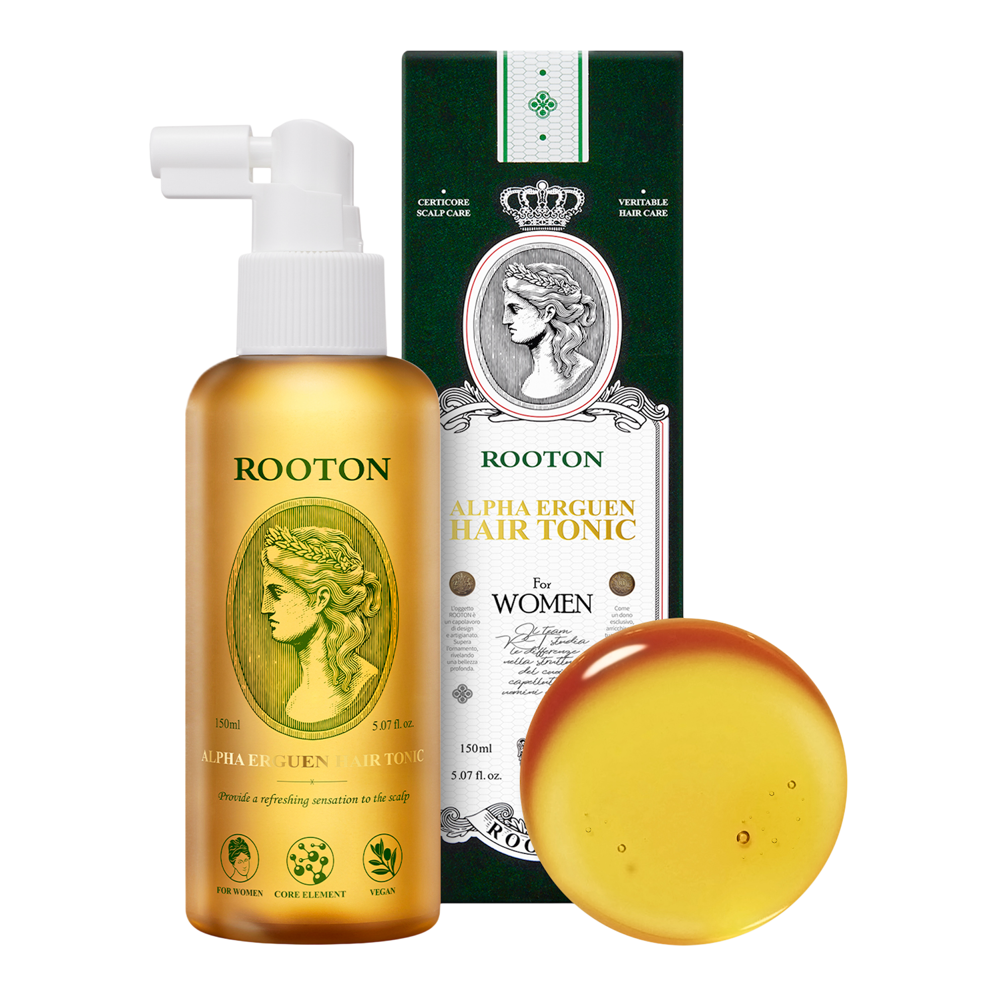 ROOTON Alpha Erguen Hair Tonic is the daily cooling and root nourishment rescue for thinning hair, dry, or itchy scalp. The watery, weightless spray provides instant thermal relief directly to the hair follicle with every application.