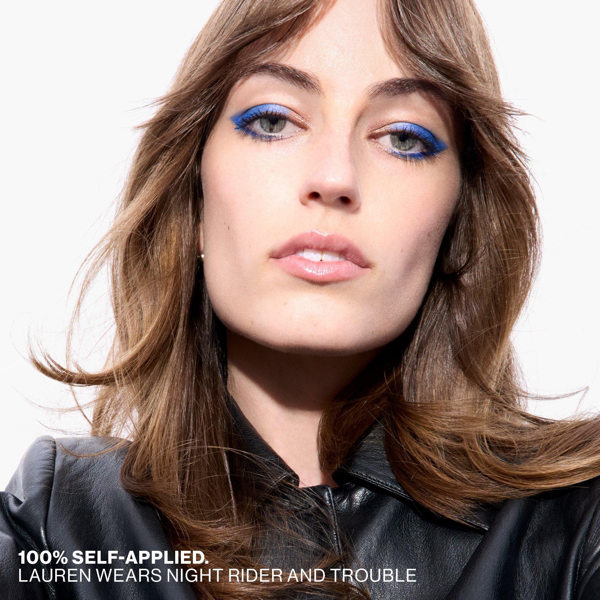 Start with clean, dry lids. Glide on a seamless wash of shadow and blend with fingers or a brush. Layer to amp up intensity. Then, trace your lash line to define and frame your eyes.