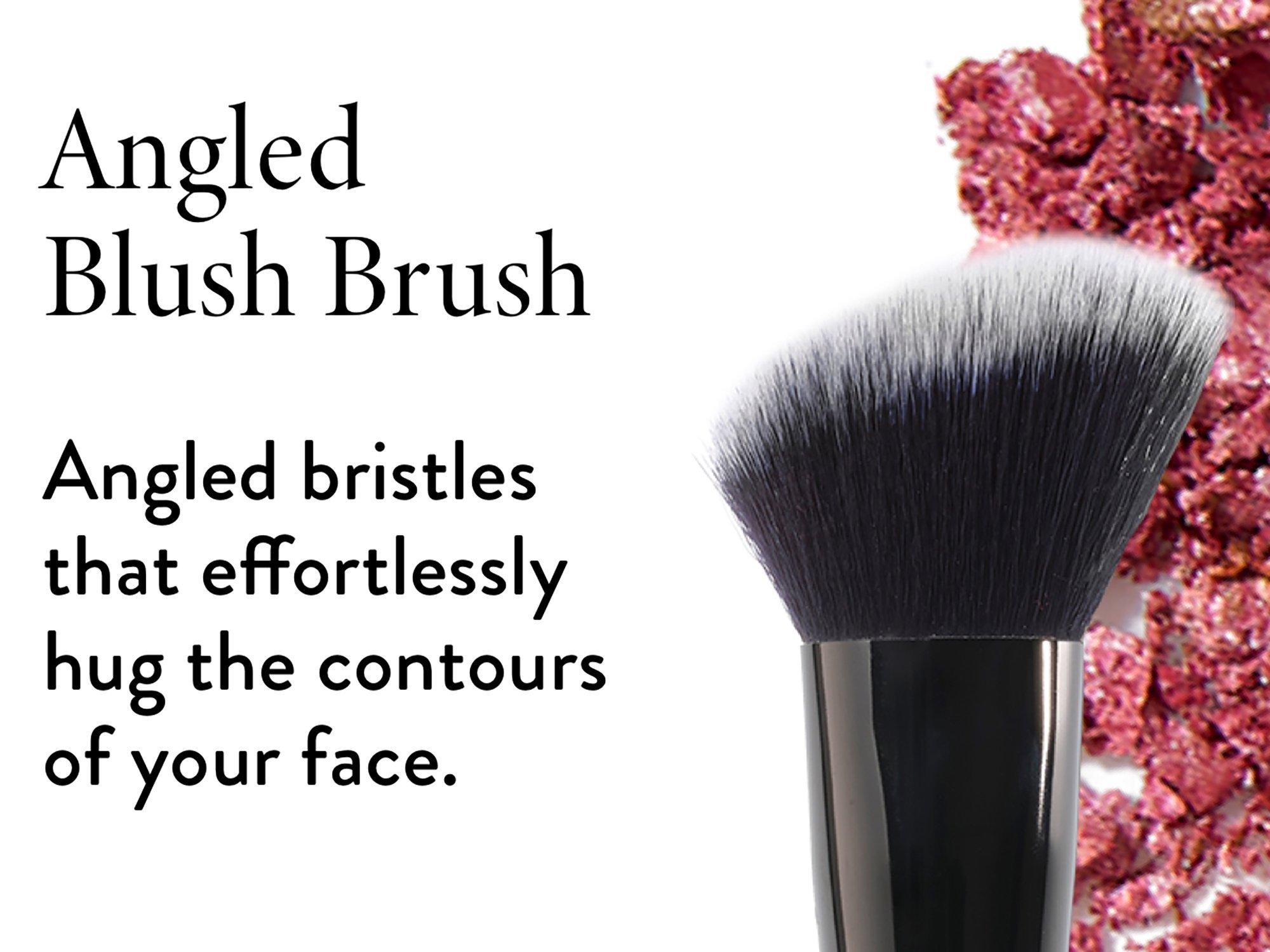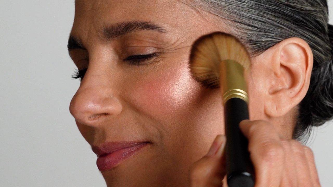 Swirl the brush in product and tap off excess.For powder blushes, sweep color across the apples of your cheeks, blending outward toward your hairline.For cream blushes, gently buff into the apples of your cheeks for a natural flush.For bronzers, blend into the hollows of your cheeks for a sculpted look.